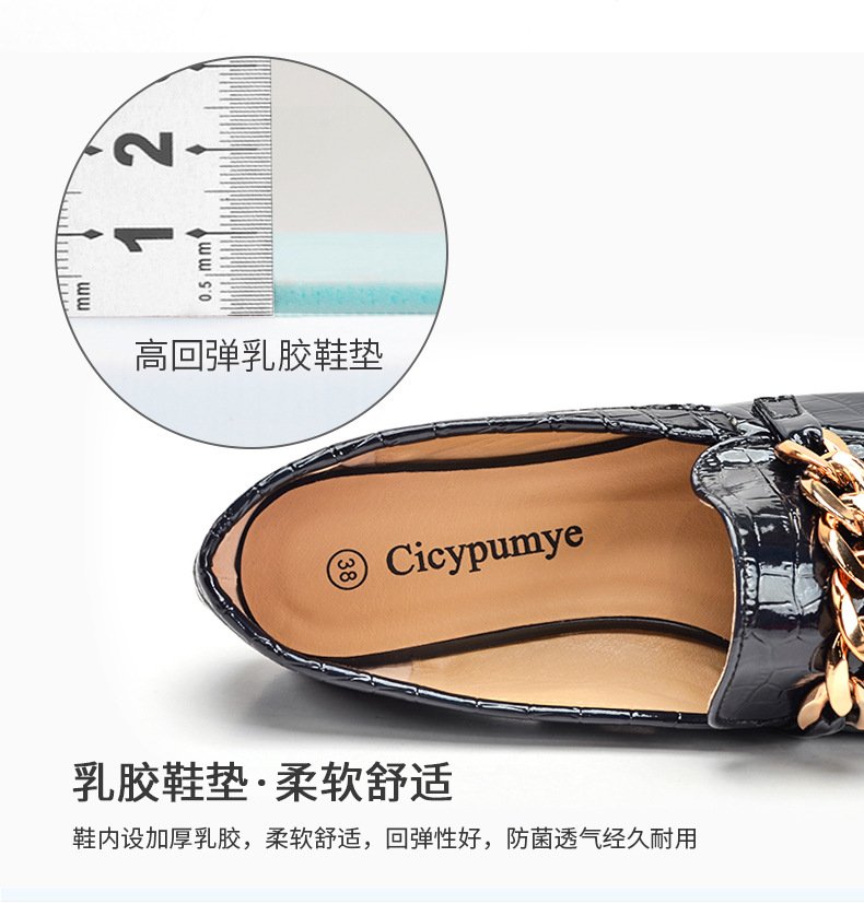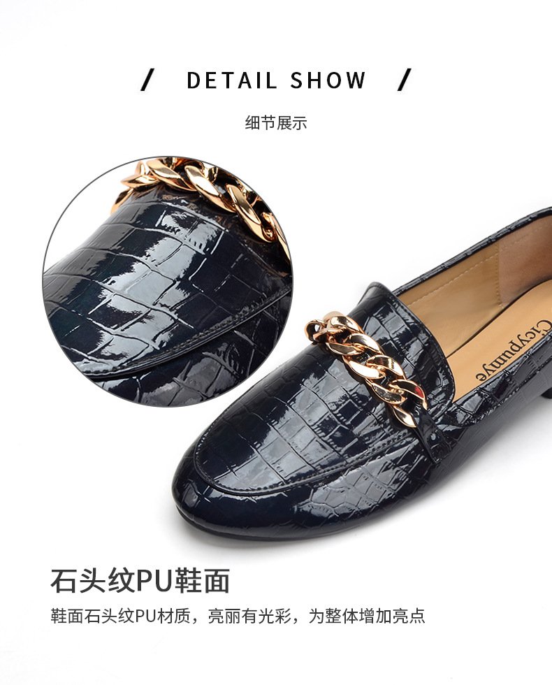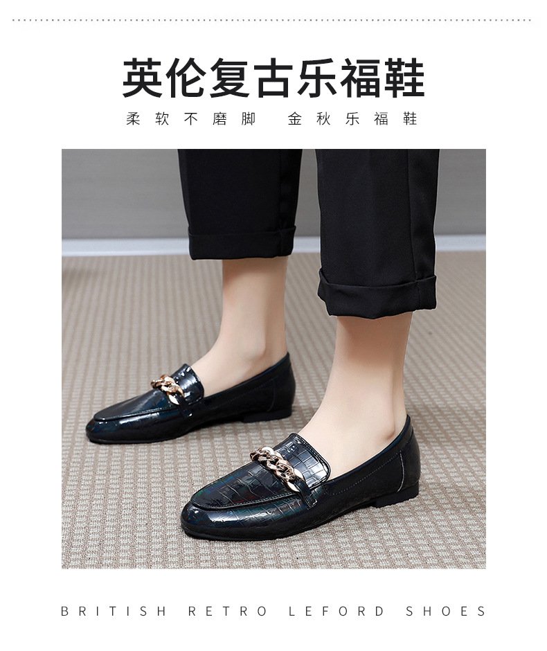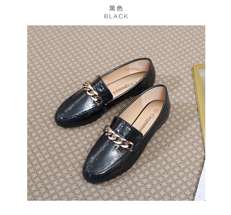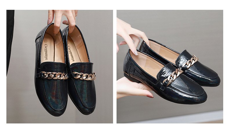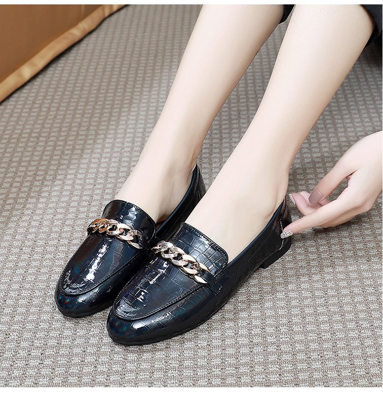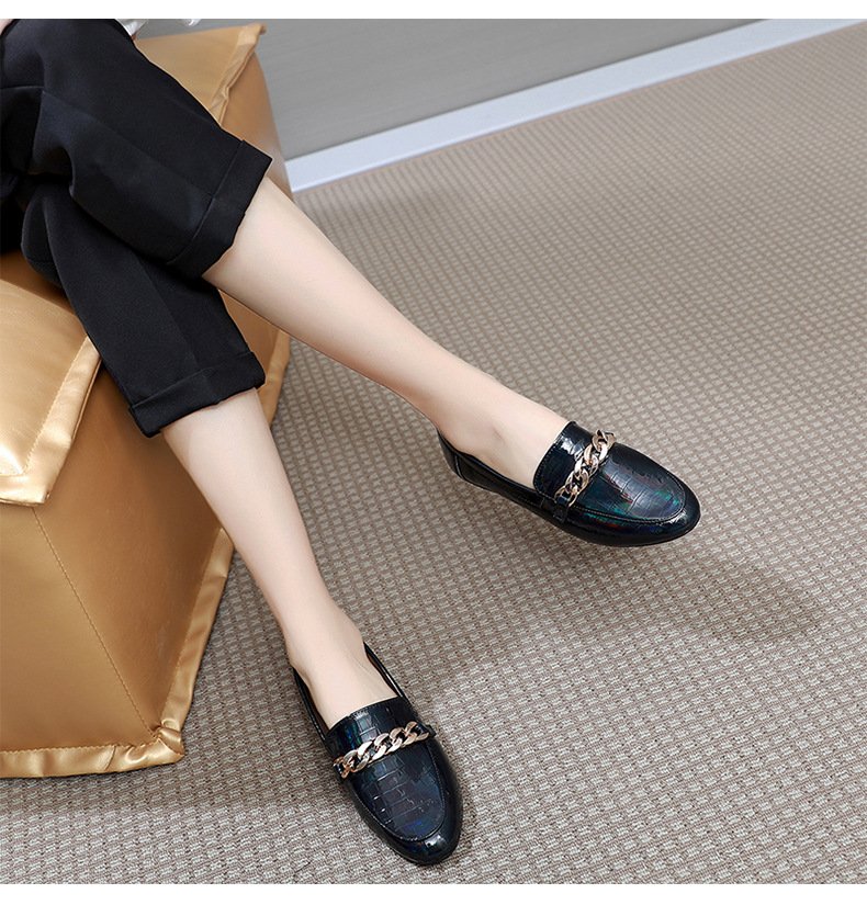 Chain loafers round toe soft bottom British lazy slip on 2022 spring and autumn patent leather single shoes women wholesale