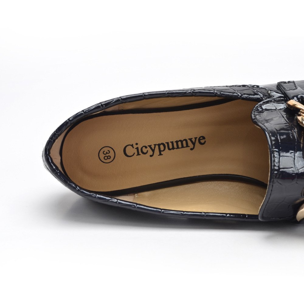 Chain loafers round toe soft bottom British lazy slip on 2022 spring and autumn patent leather single shoes women wholesale