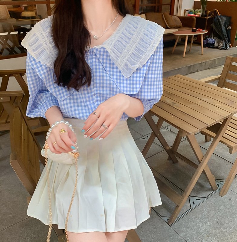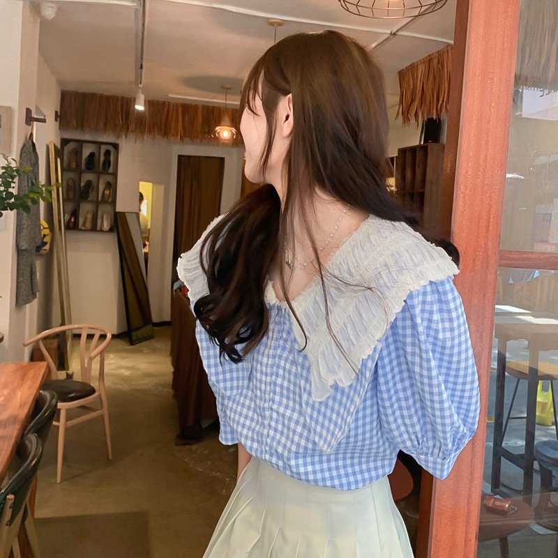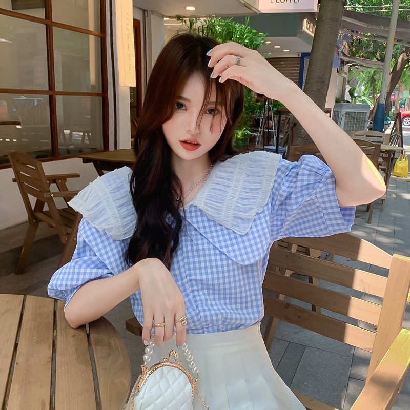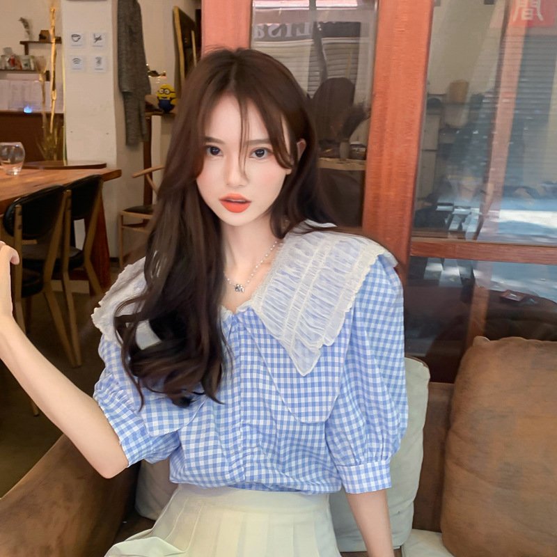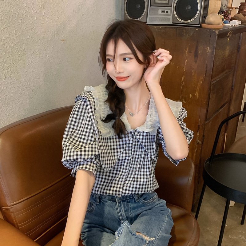 Be the first to review “Chic French puff sleeve short-sleeved shirt female all-match summer small plaid design doll collar shirt” Cancel reply