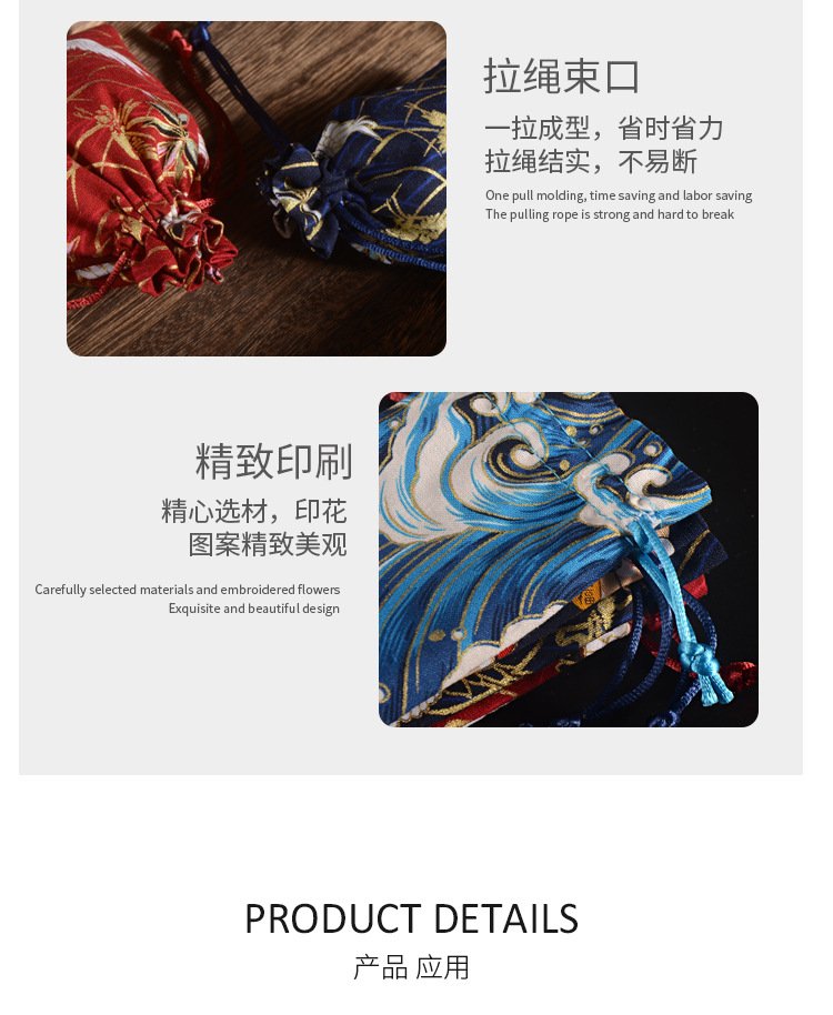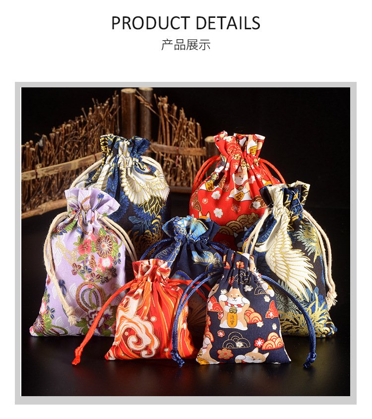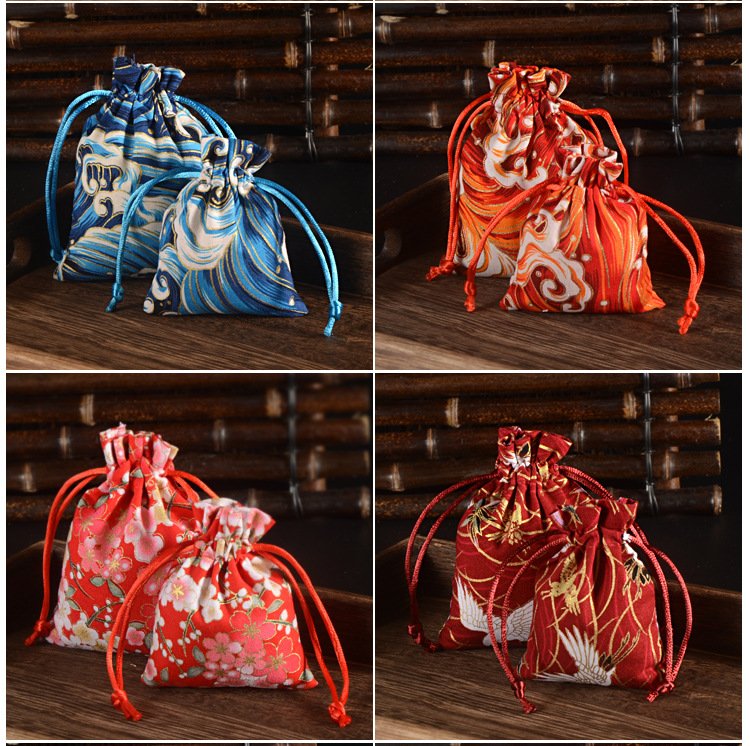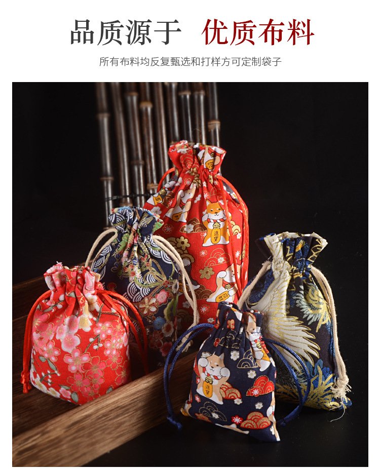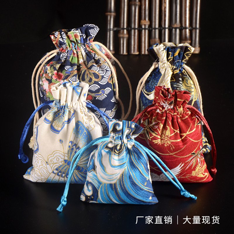 Chinese Bronzing Cotton Drawstring Pocket Retro Jewelry Spice Breathable Packaging Bag Red Cloth Bag Jewelry Bracelet
