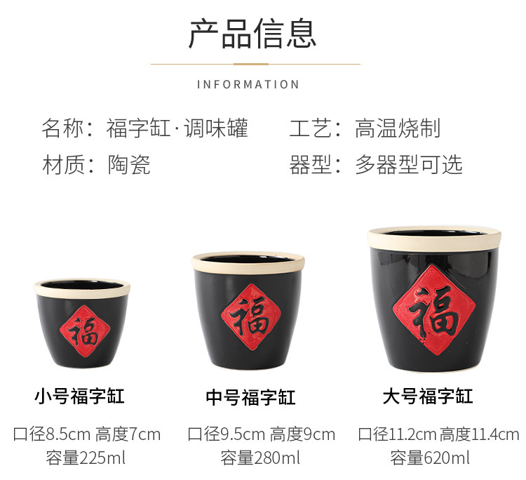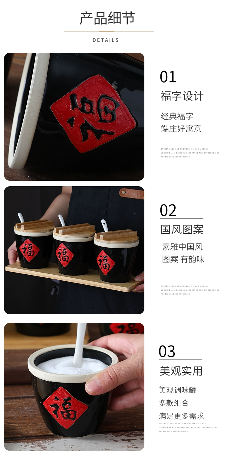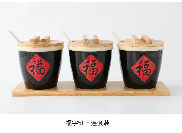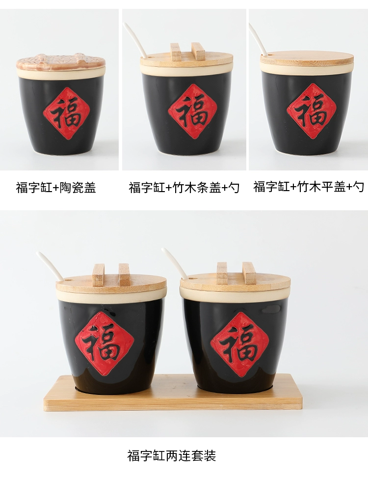 Chinese creative seasoning bottle commercial kitchen ceramic blessing jar with spoon small seasoning box salt chili blessing jar sauce salt jar