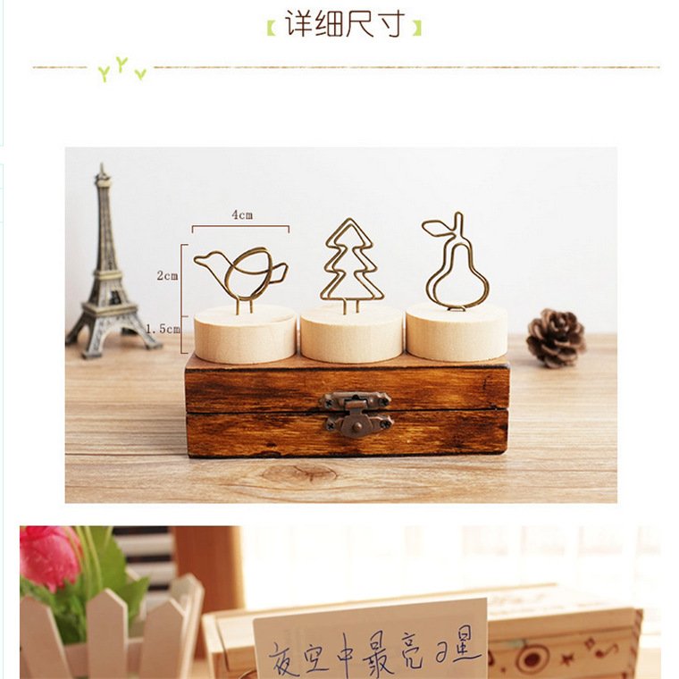 Creative crafts wooden wrought iron clip note clip cartoon business card clip bionic home decoration Japanese groceries