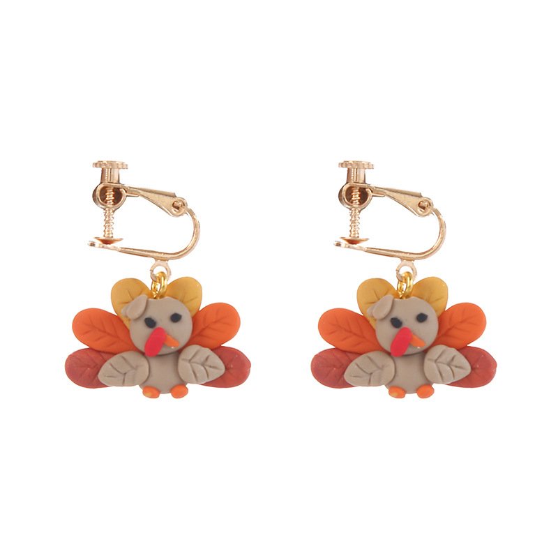 Creative sweet Thanksgiving jewelry handmade soft pottery simulation pumpkin turkey maple chrysanthemum a variety of autumn earrings
