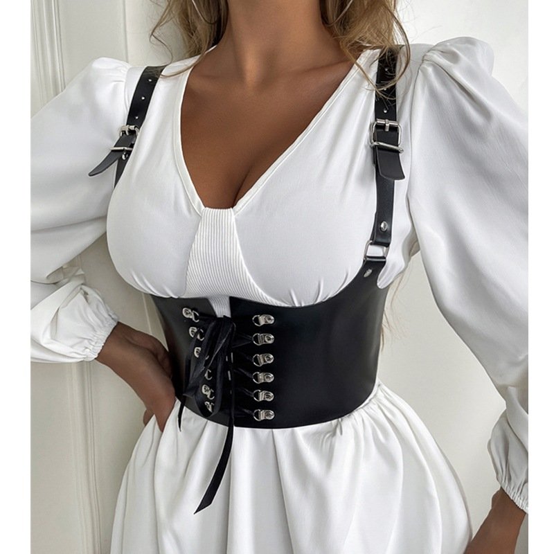 Cross-border Amazon eBay autumn solid color PU leather girdle seal European and American waist slim vest women’s clothing spot 9389