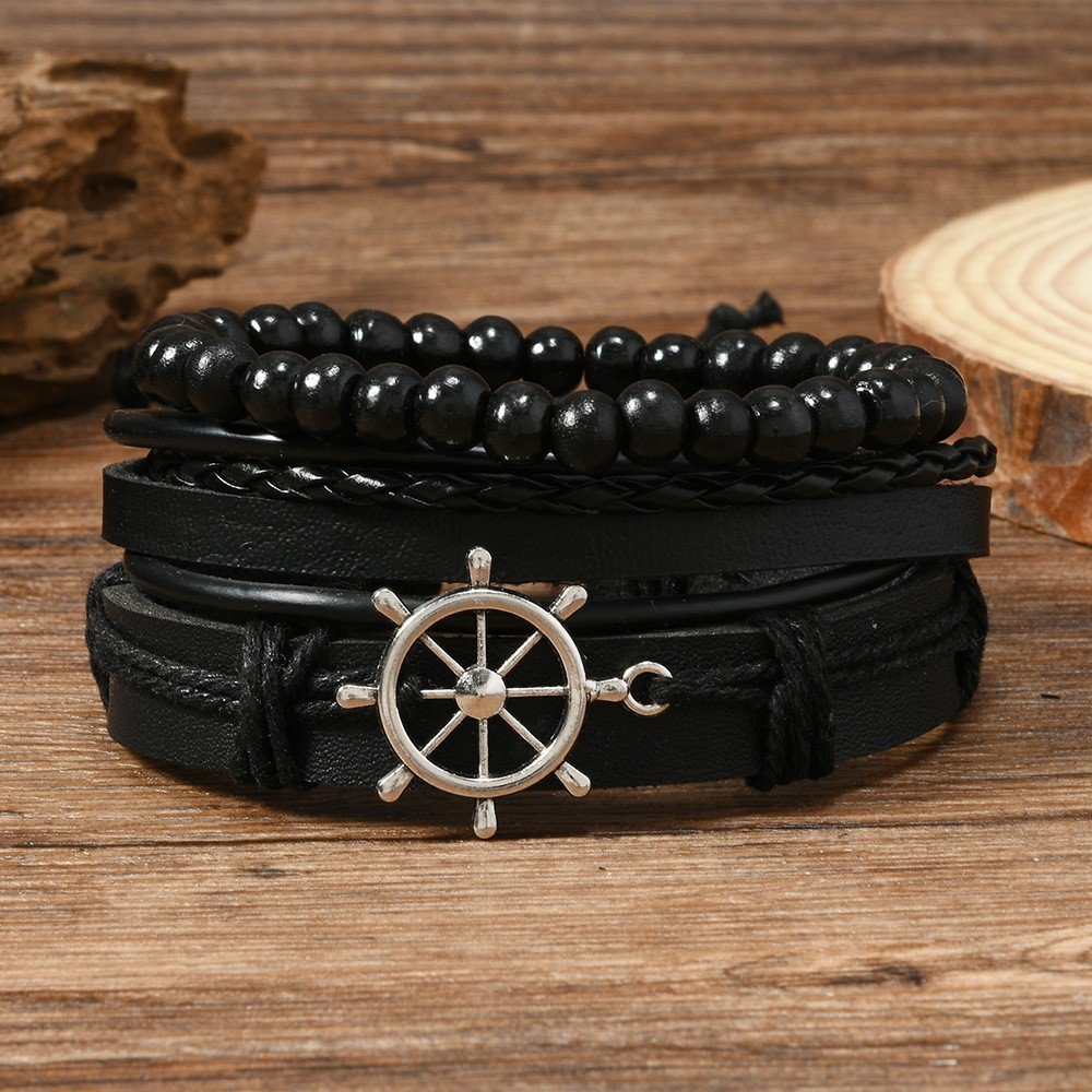 Cross-border new vintage style multi-layer elastic line rudder bow 3 pieces 4 pieces 5 pieces 6 pieces set handwoven men’s bracelets