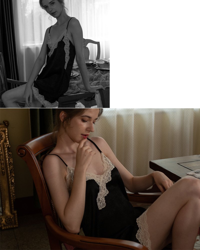 Cross-border velvet lace naked back sexy sling pajamas women’s home service simulation ice silk nightdress women’s thin section 6816