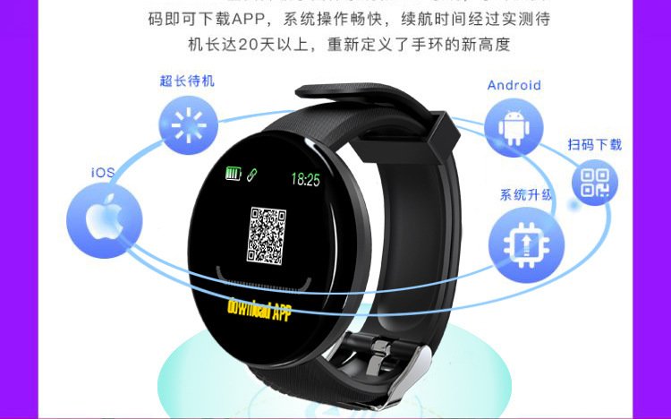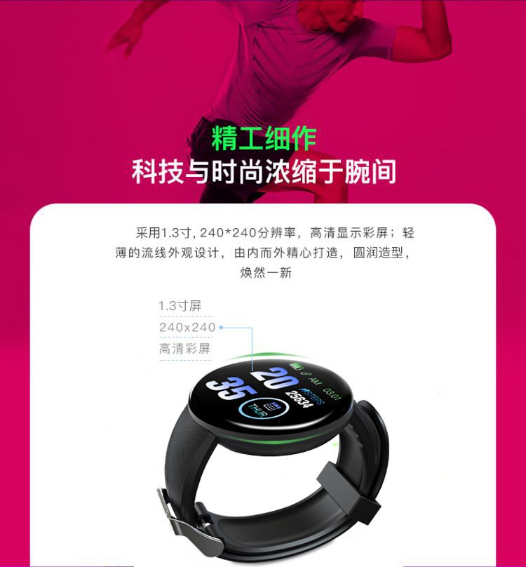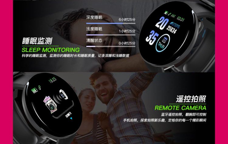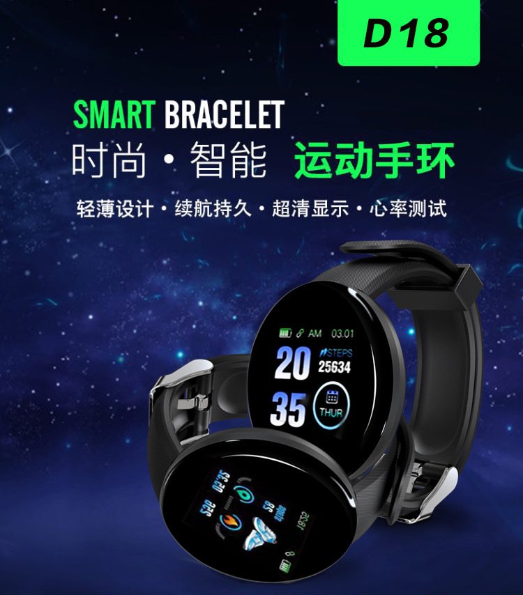 Be the first to review “D18 round screen smart bracelet heart rate Bluetooth pedometer sleep monitoring blood pressure blood oxygen sports electronic bracelet fashion”
