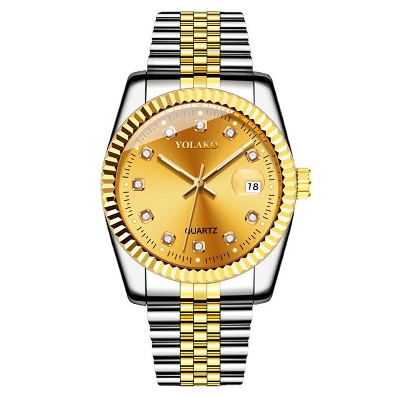 Diamond Face Steel Strap Date Watch Women’s Simple Casual Student Fashion Quartz Gold Set Men’s Watch Couple