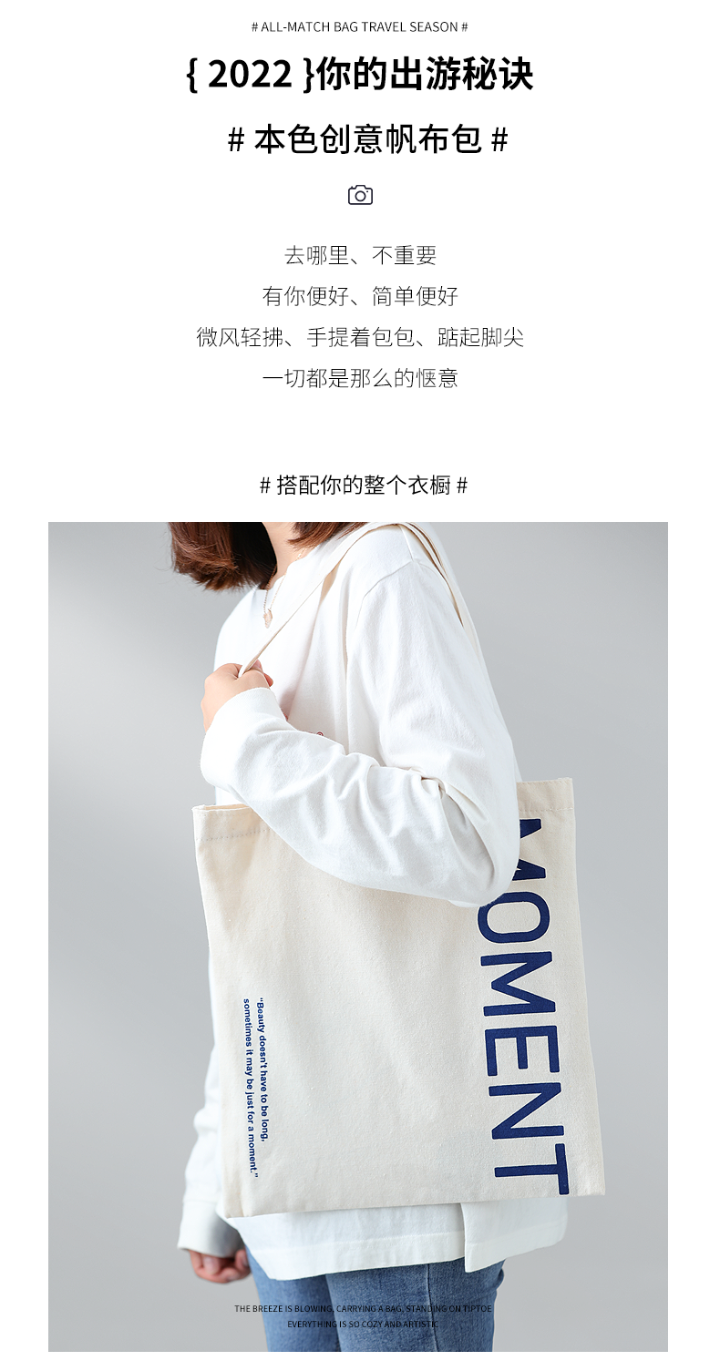 Doco Home Products Canvas Bag Female Handbag Simple Large-capacity Shoulder Bag Literary Fashion Canvas Bag Japanese Environmental Protection Shopping Storage Bag Female College Student Letter M