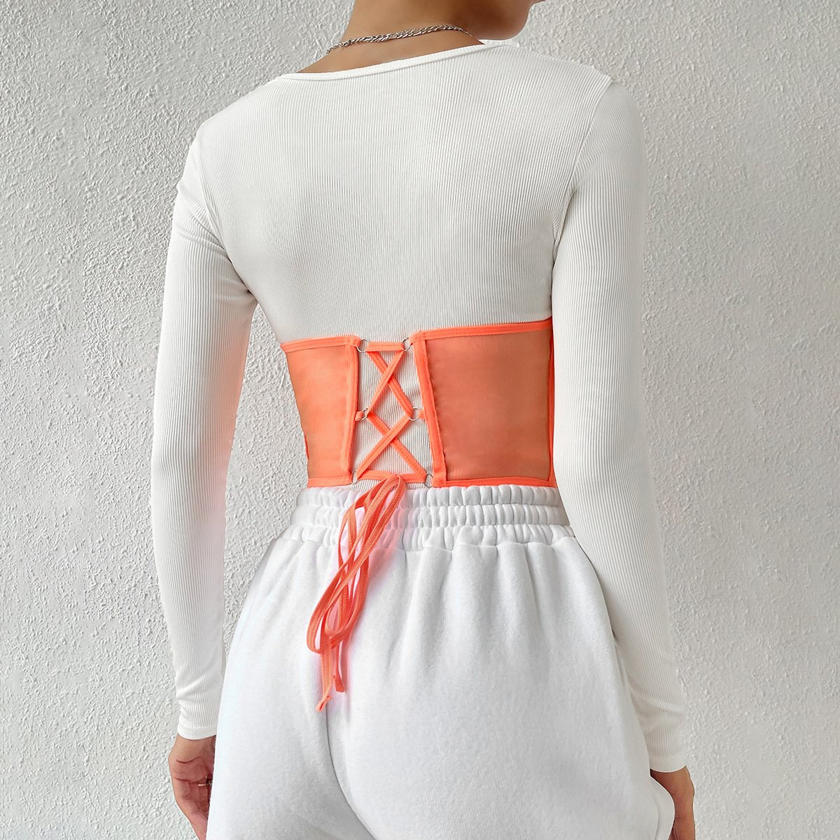 European and American wind mesh stitching chain sexy wrap chest waist sexy inner fishbone steel ring waist seal vest 8970
