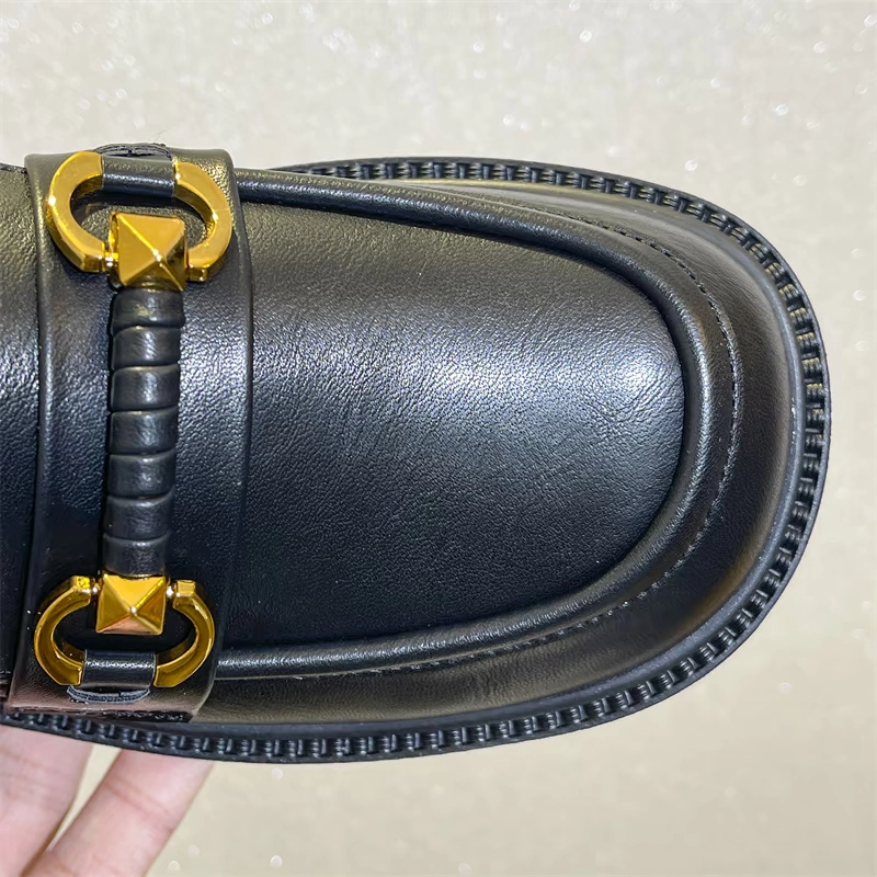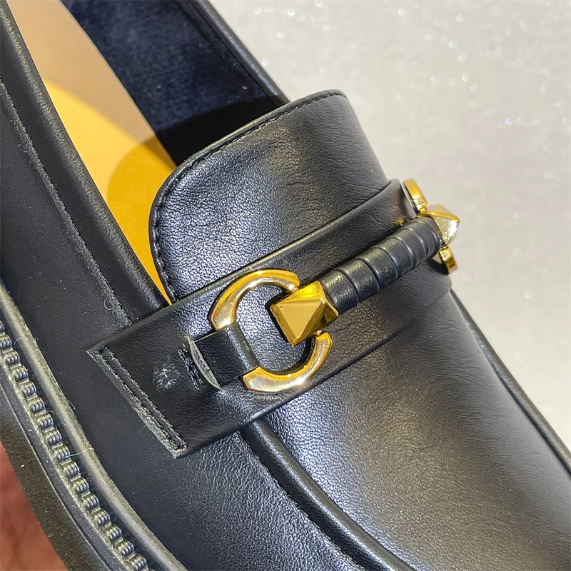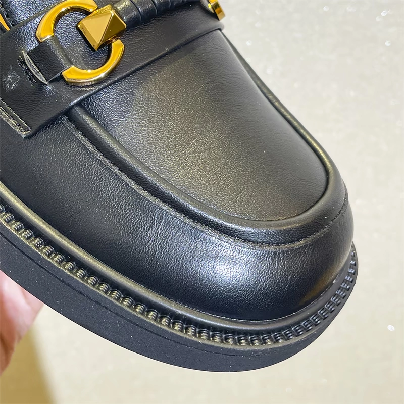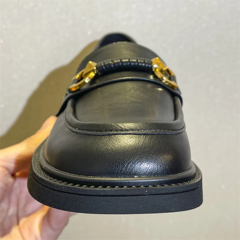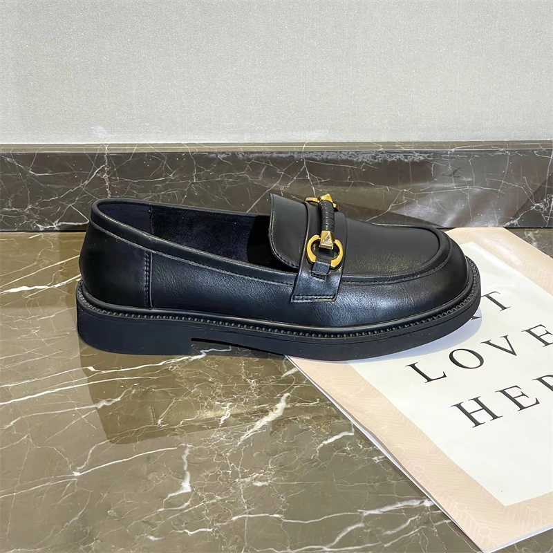 Flat-bottomed loafers women’s 2023 spring new Japanese jk commuter single shoes soft-soled slip-on metal leather shoes