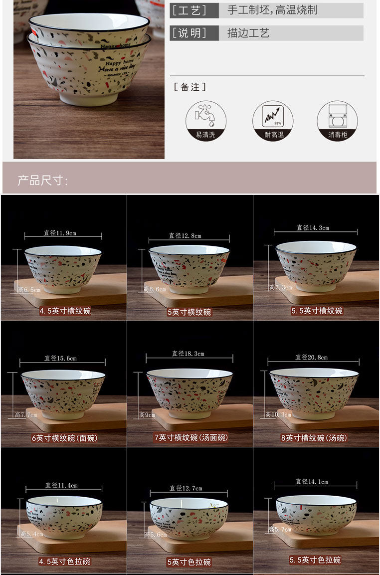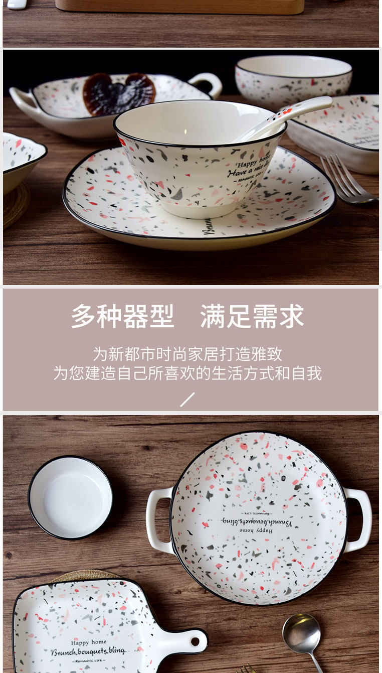 Free collocation Qianshun ceramic underglaze painted terrazzo starry rice plate square soup plate rice bowl noodle bowl