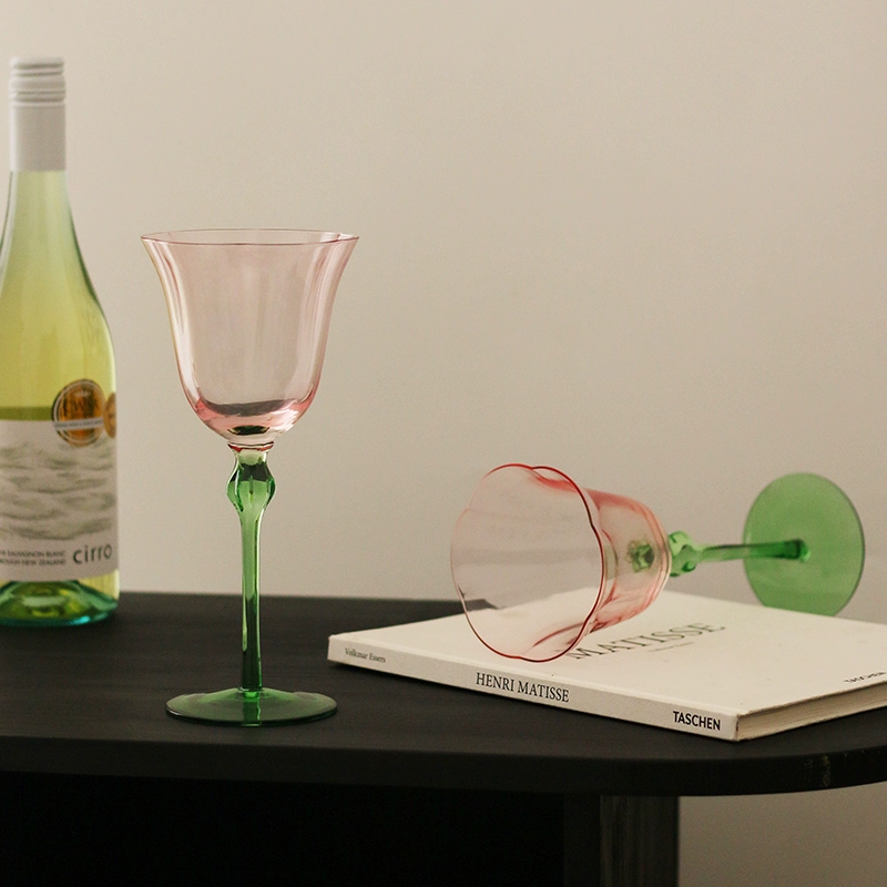 French retro style red wine glass Moshang flowers blooming wine goblet flower shape cup Valentine’s Day Tanabata gift