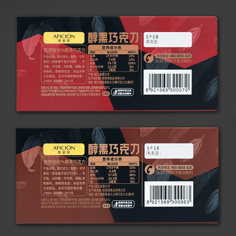 Gefei Song 100% dark chocolate pure cocoa butter fitness no added sucrose super bitter snack baking net red 90g