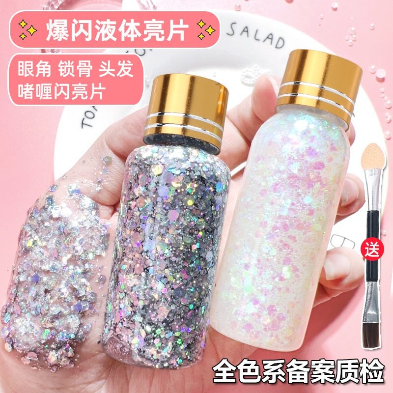 Glittering Liquid, Big Sequin, Pop Sparkle, Stage Makeup, Hair, Face, Glue-Free Gel, Glitter, Eyeshadow Makeup