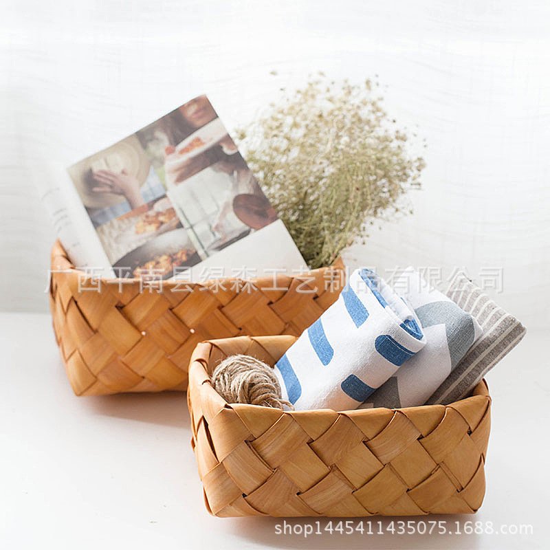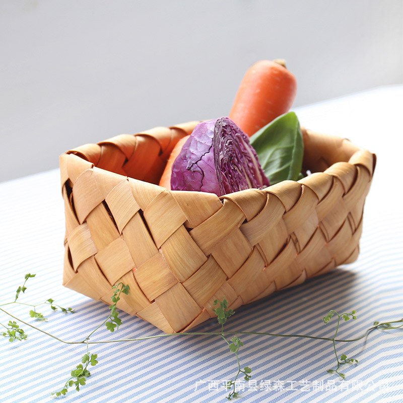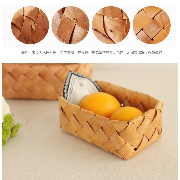 Hand-woven Wood Chip Weaving Storage Basket Kitchen Grocery Bread Basket Fruit Vegetable Picnic Storage Basket