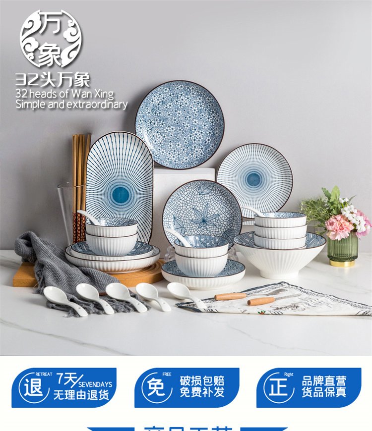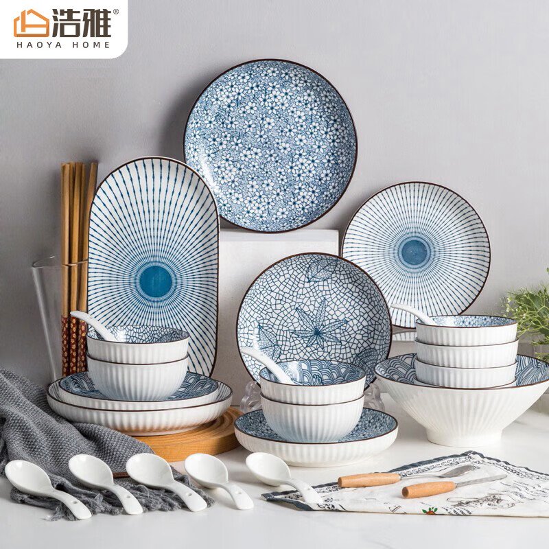 Haoya Japanese-style Jingdezhen Ceramic Tableware Bowl Plate Fish Plate Set Household Housewarming Gift 32 Vientiane Gift Boxes
