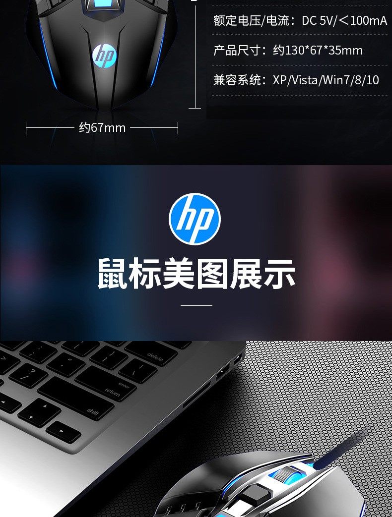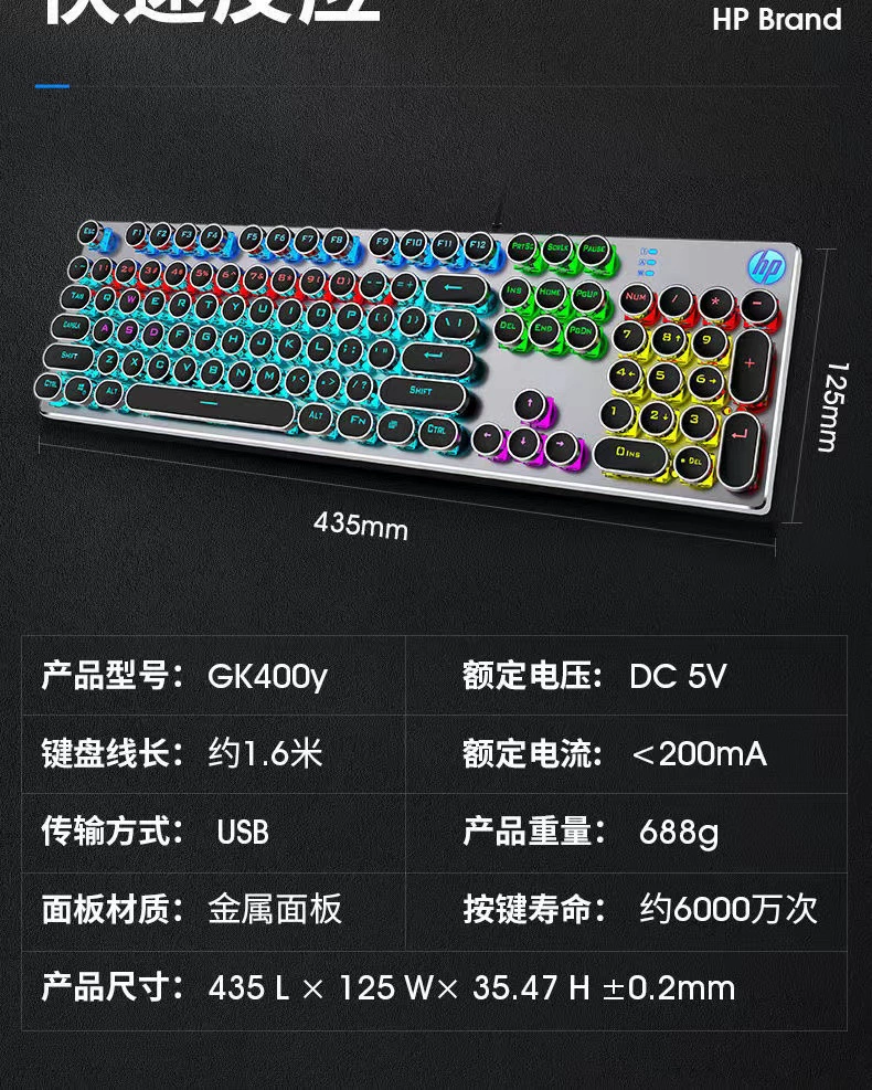 HP/HP GK400 mechanical keyboard USB wired laptop desktop external office e-sports game