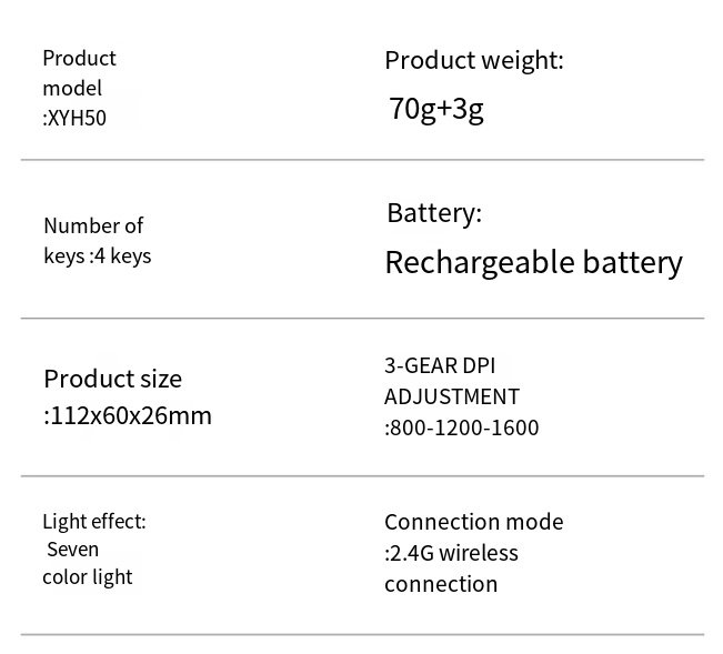 Be the first to review “Hyun Silver Fox XYH50 Charging Wireless Luminous Mouse Business Office Mouse Computer Accessories Cross-border Amazon” Cancel reply