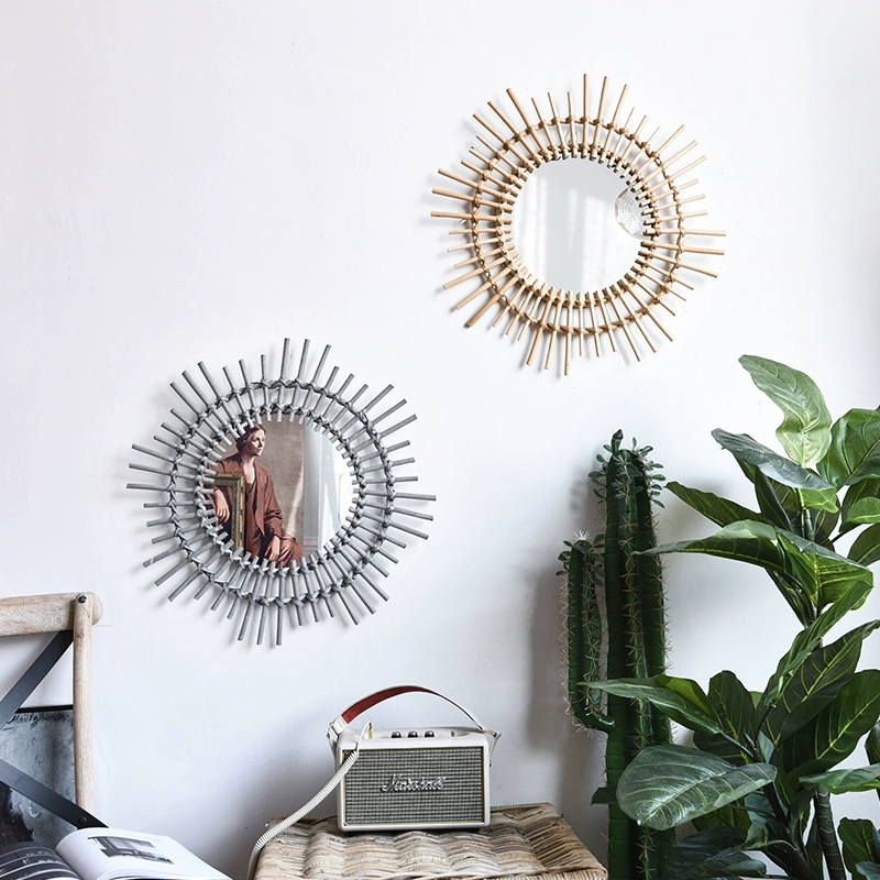 Indonesian rattan dressing makeup mirror creative art decoration round mirror B&B living room porch wall wall hanging mirror