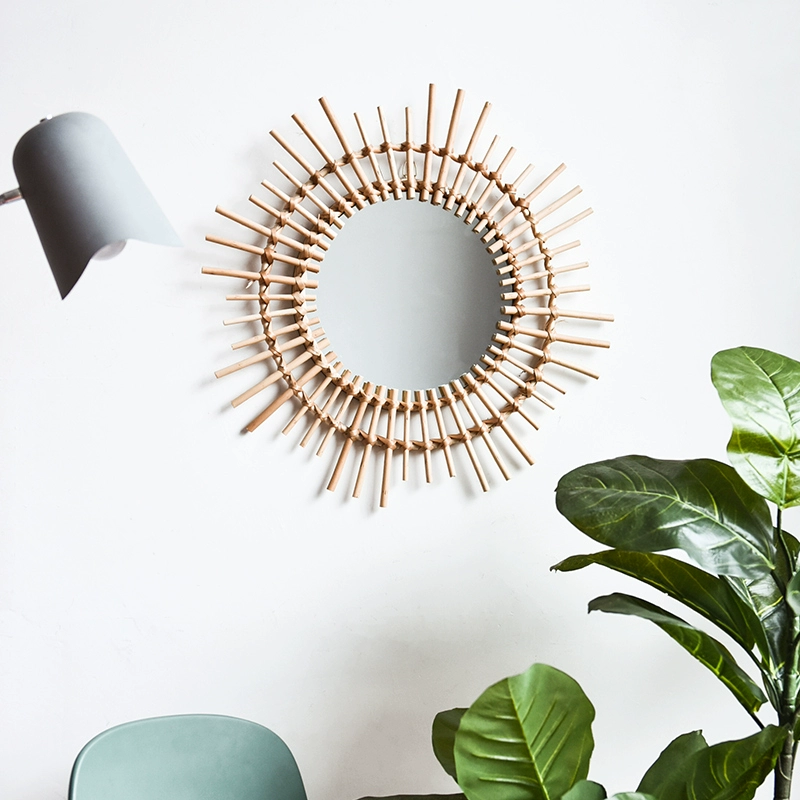 Indonesian rattan dressing makeup mirror creative art decoration round mirror B&B living room porch wall wall hanging mirror