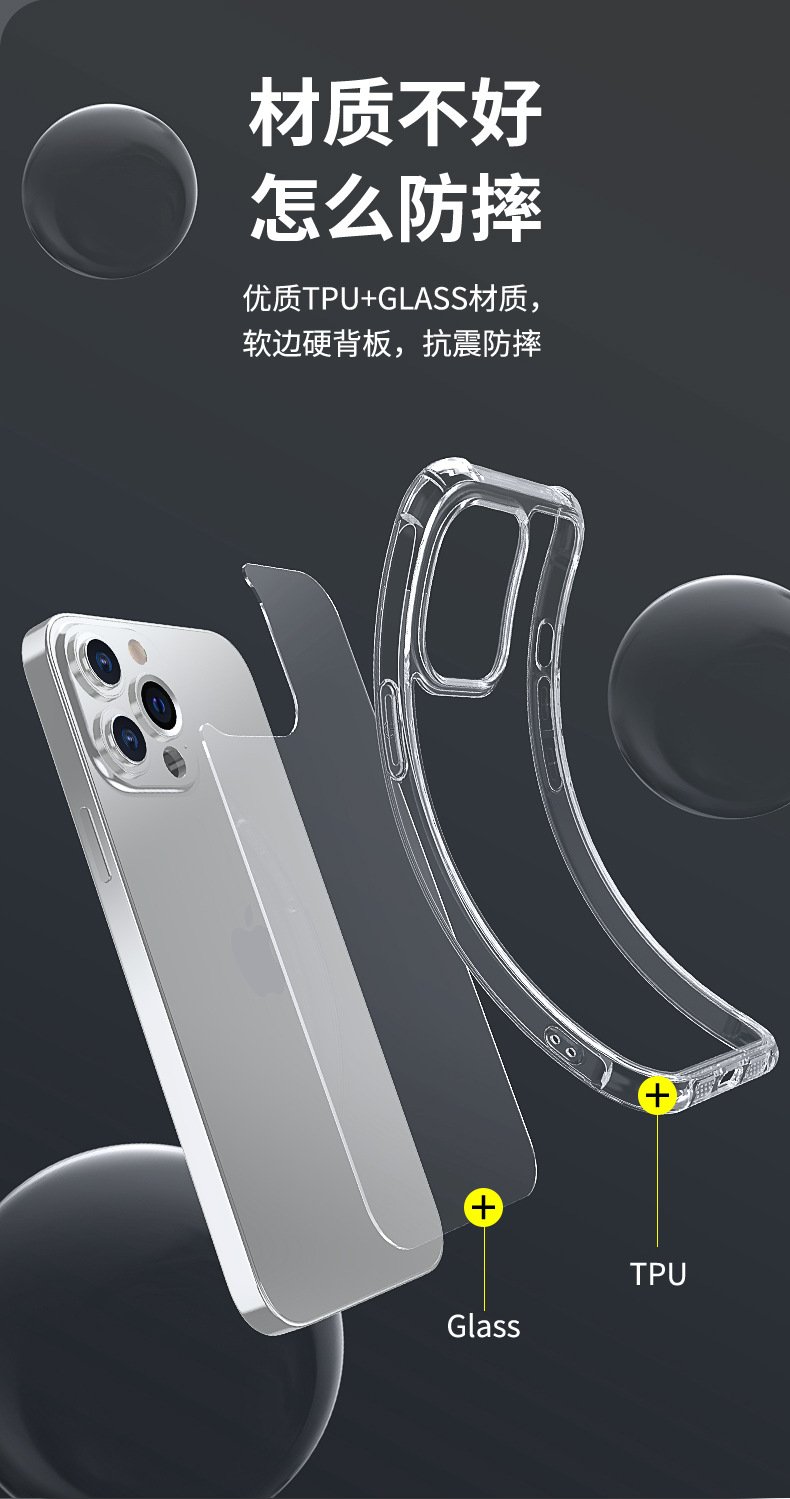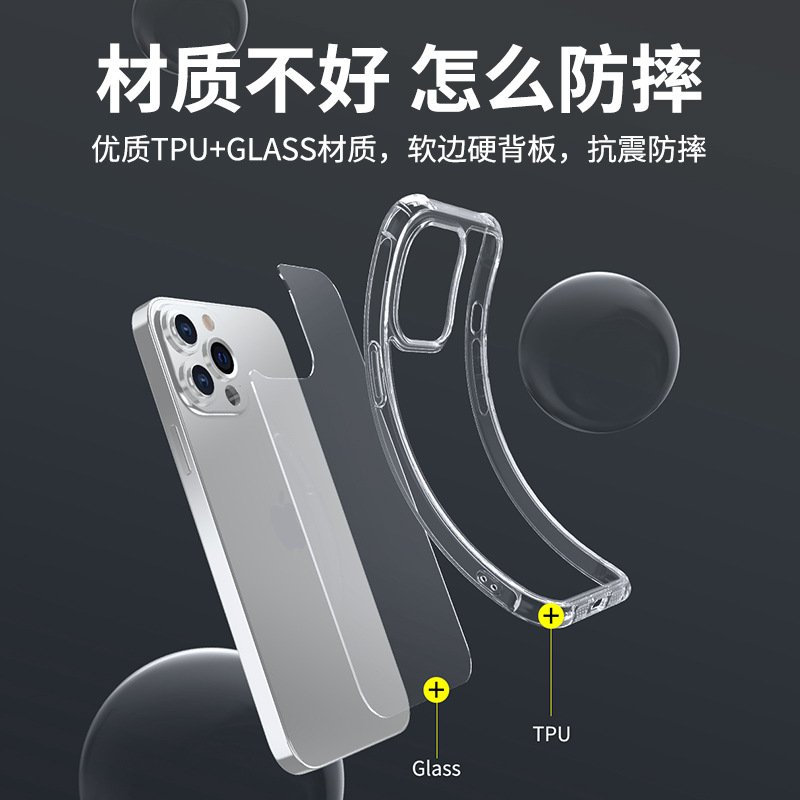 Iphone14 mobile phone case tempered glass suitable for Apple 13 pro max transparent protective case anti-fall 12 case