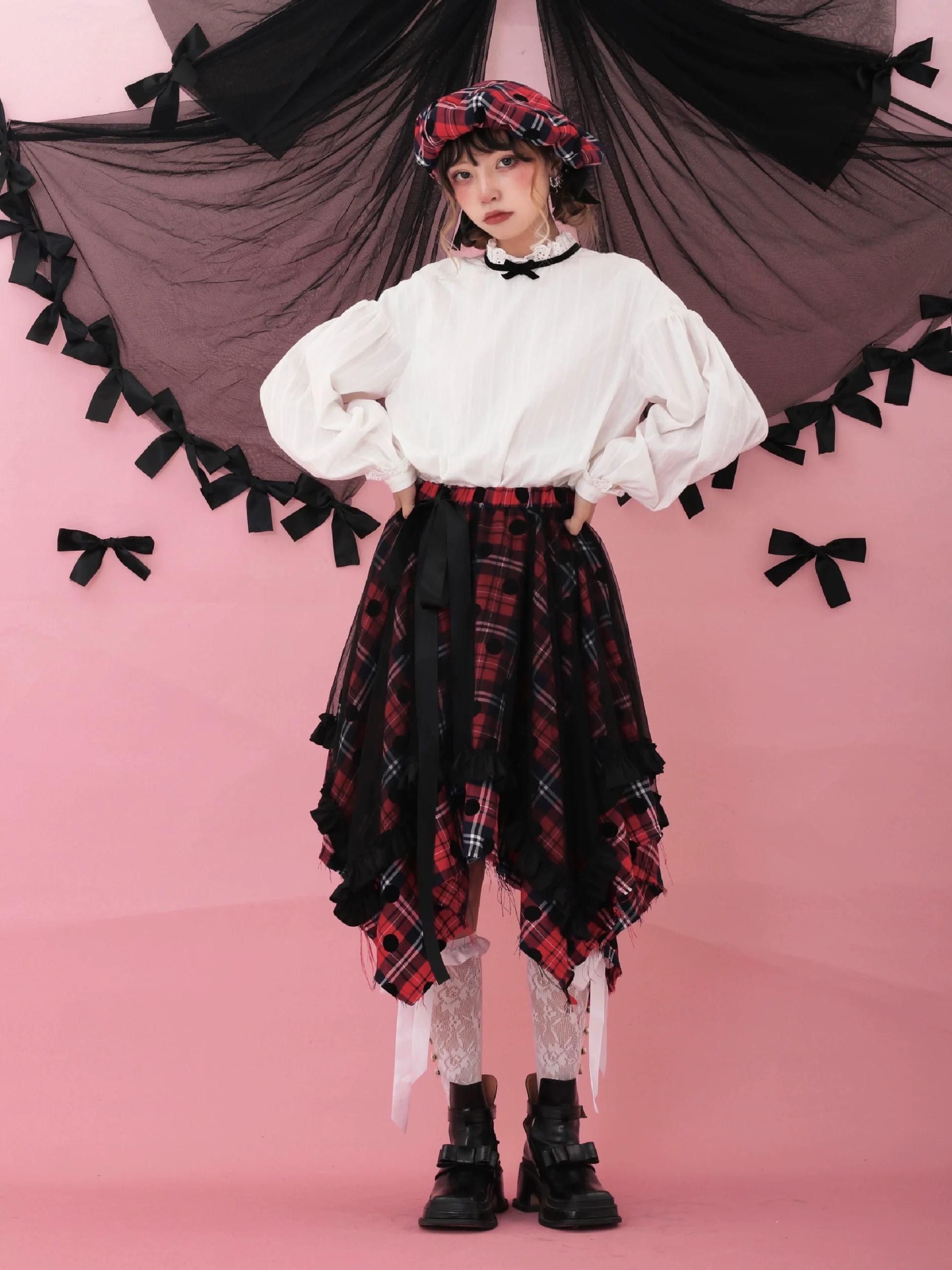 Size: m-skirt-with-raw-edge, Color: red-wave-point-spot5,182.00৳
