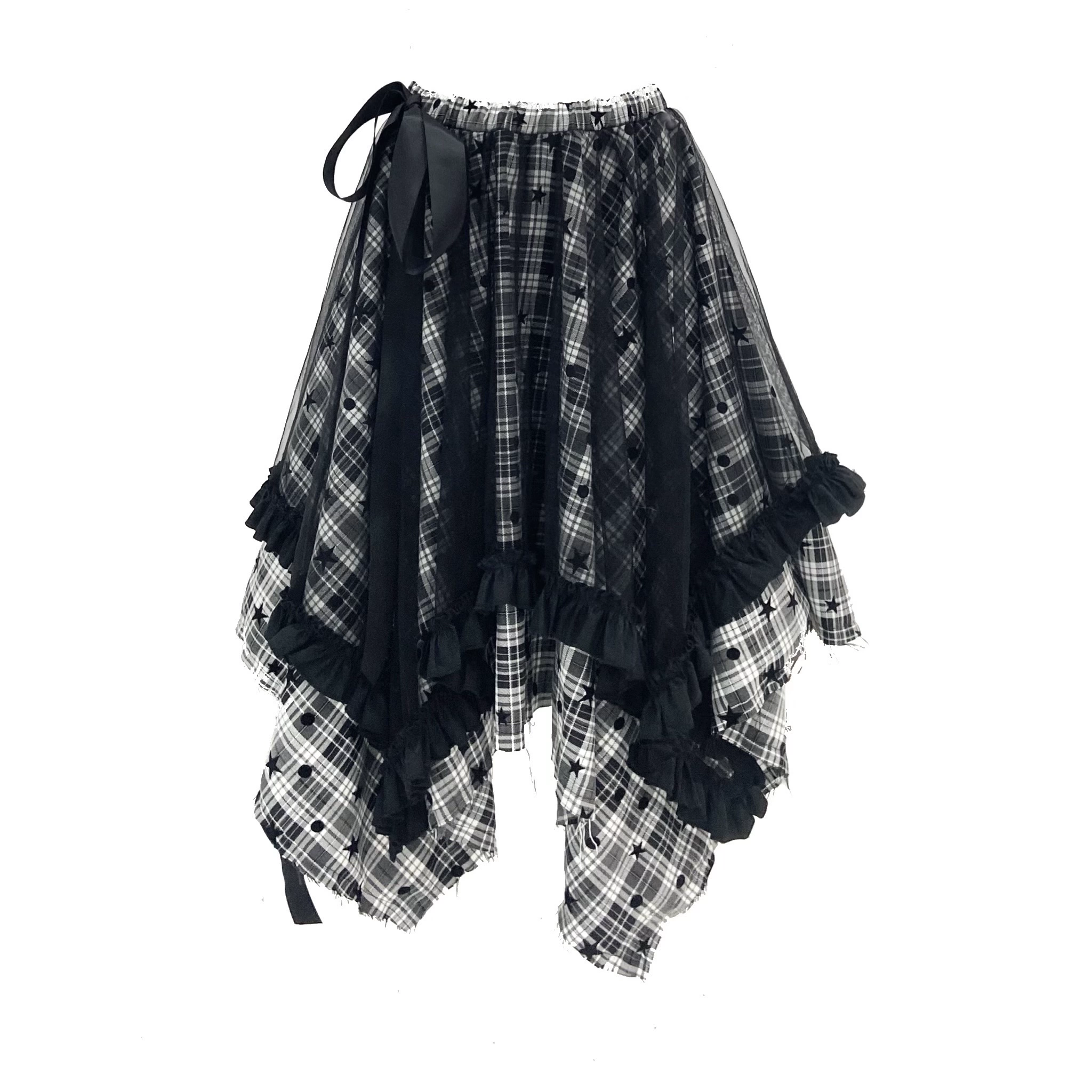 Size: s-skirt-with-raw-edge-design, Color: black-star-spot5,182.00৳