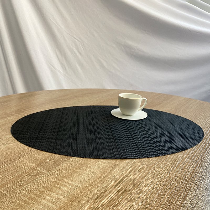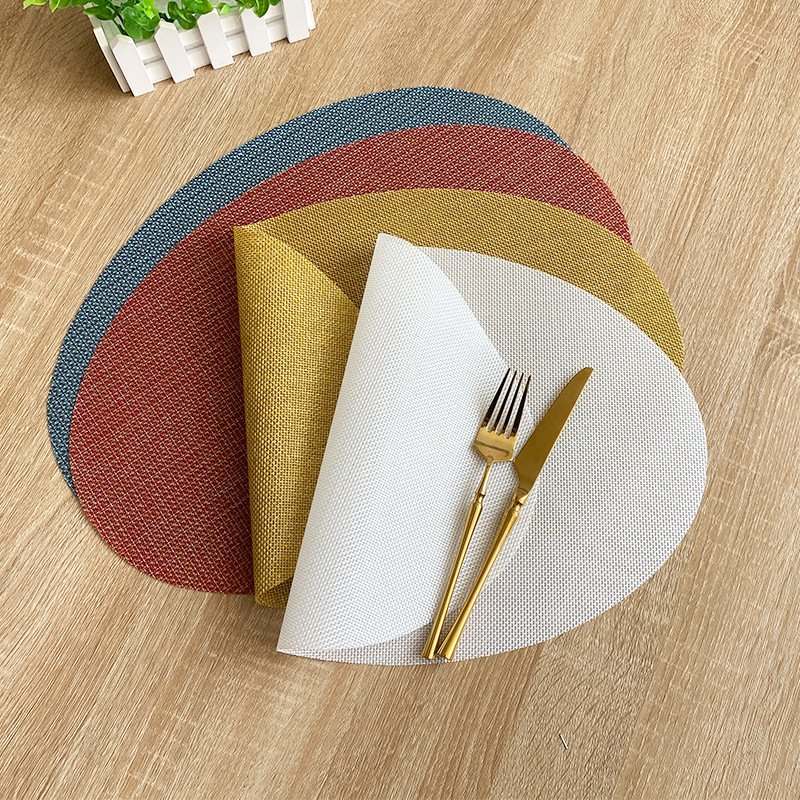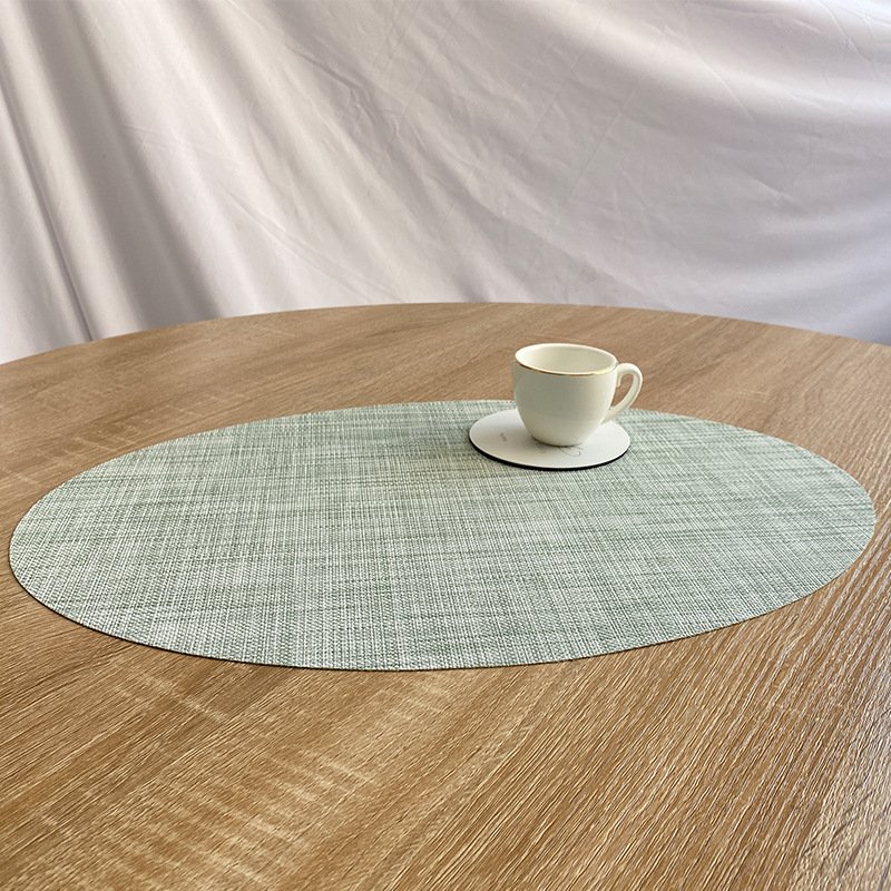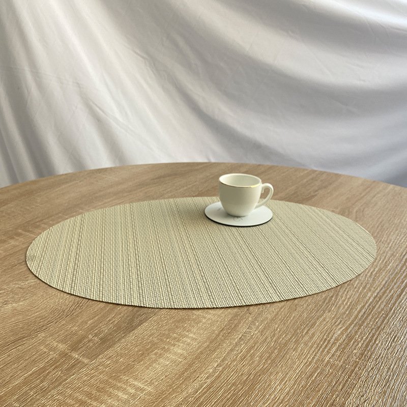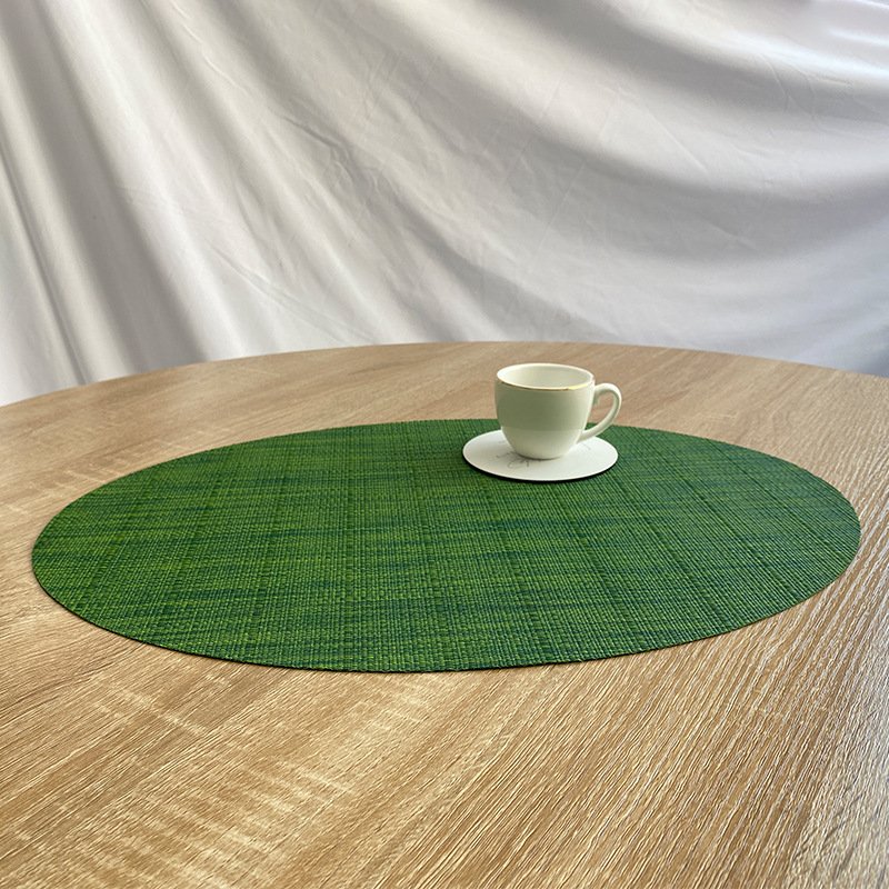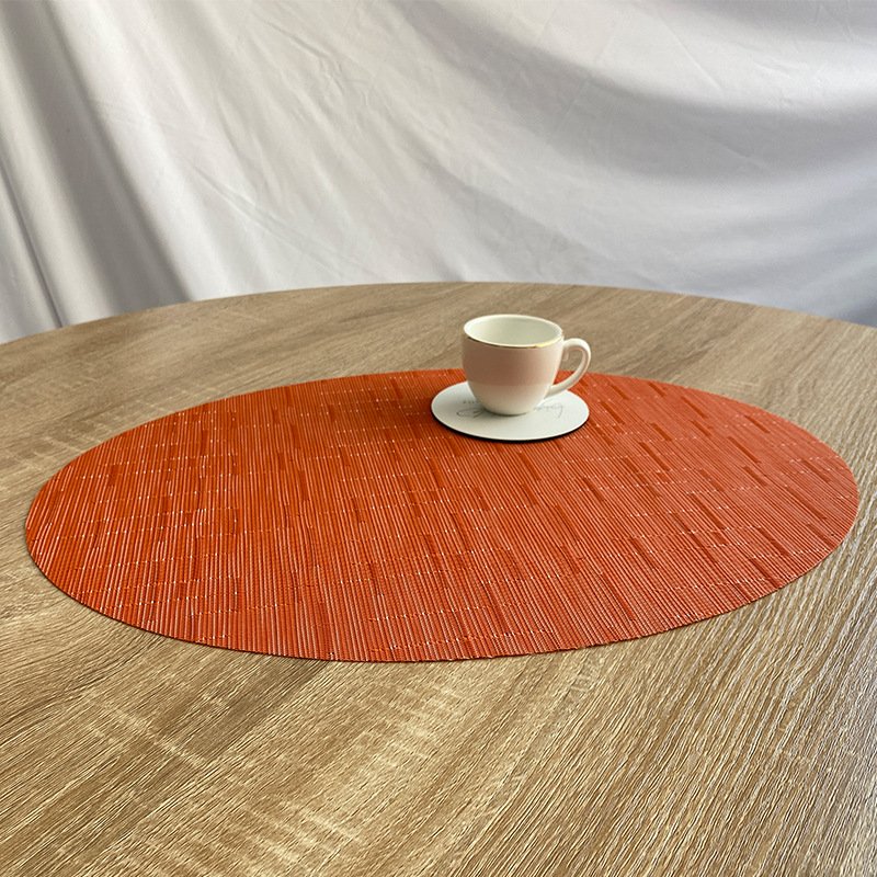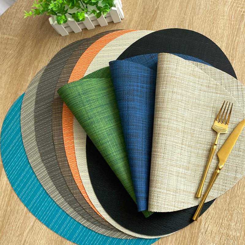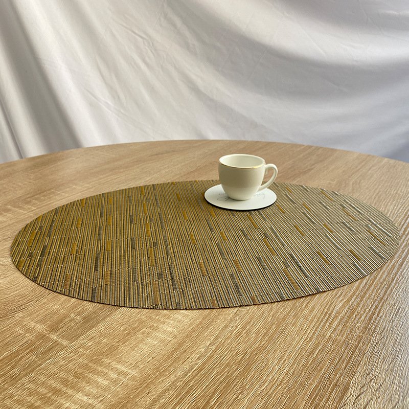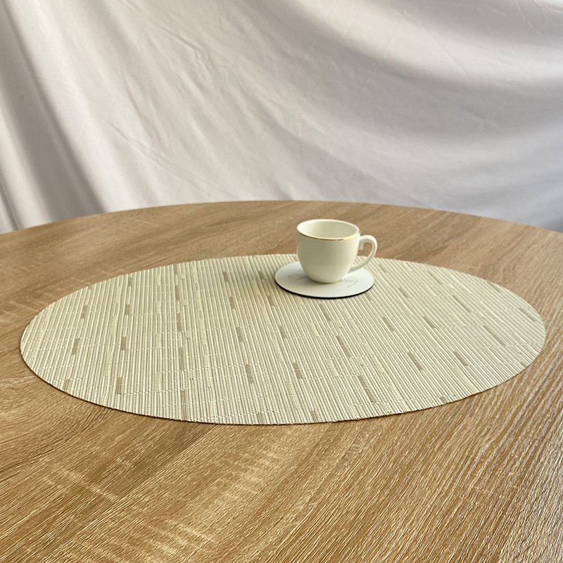 Japanese bamboo pattern heat insulation placemat oval thickened tableware mat hotel PVC mat solid color home kitchen mat coaster