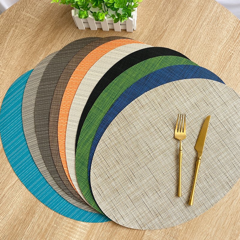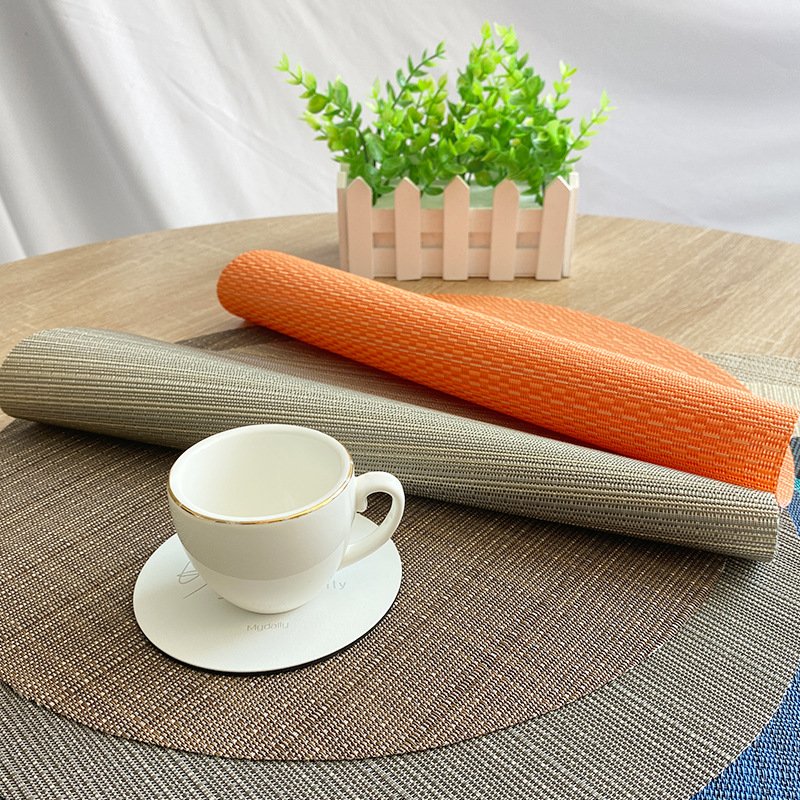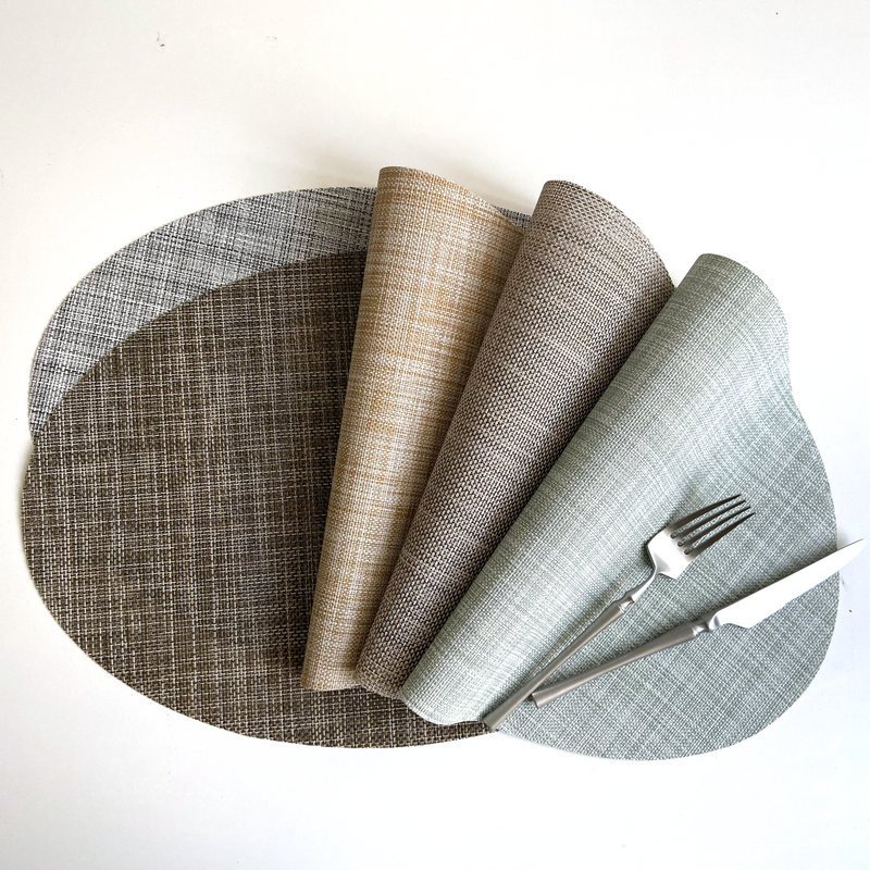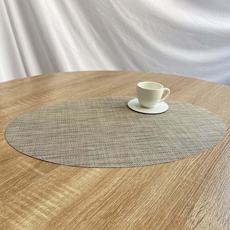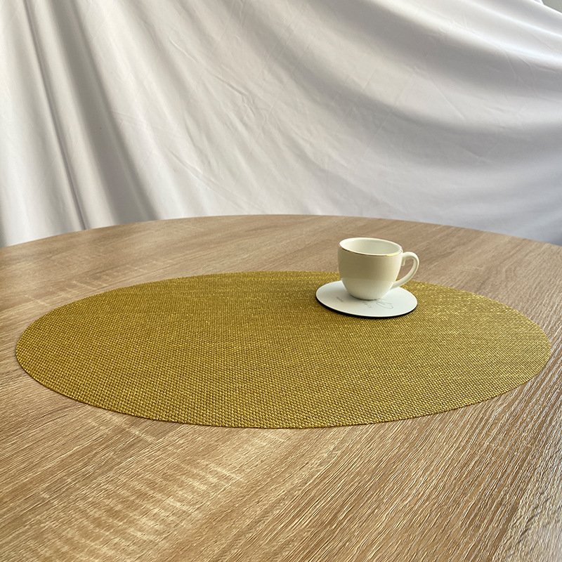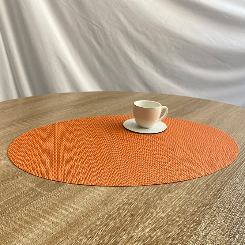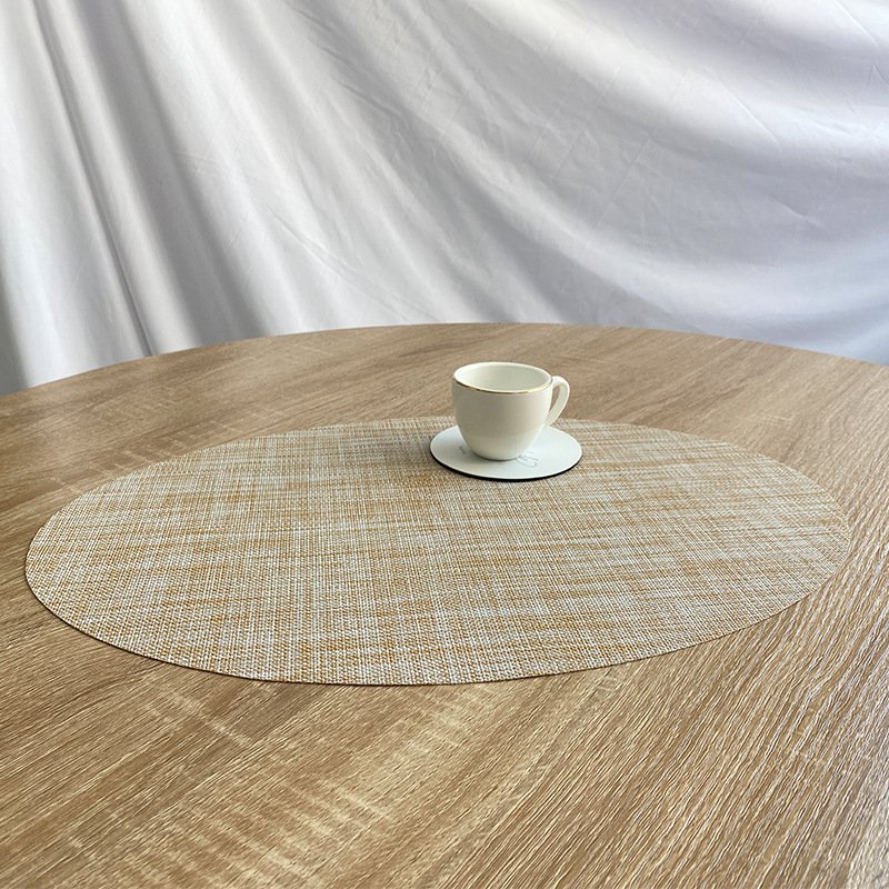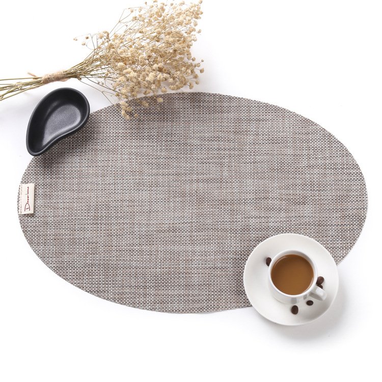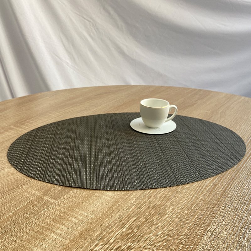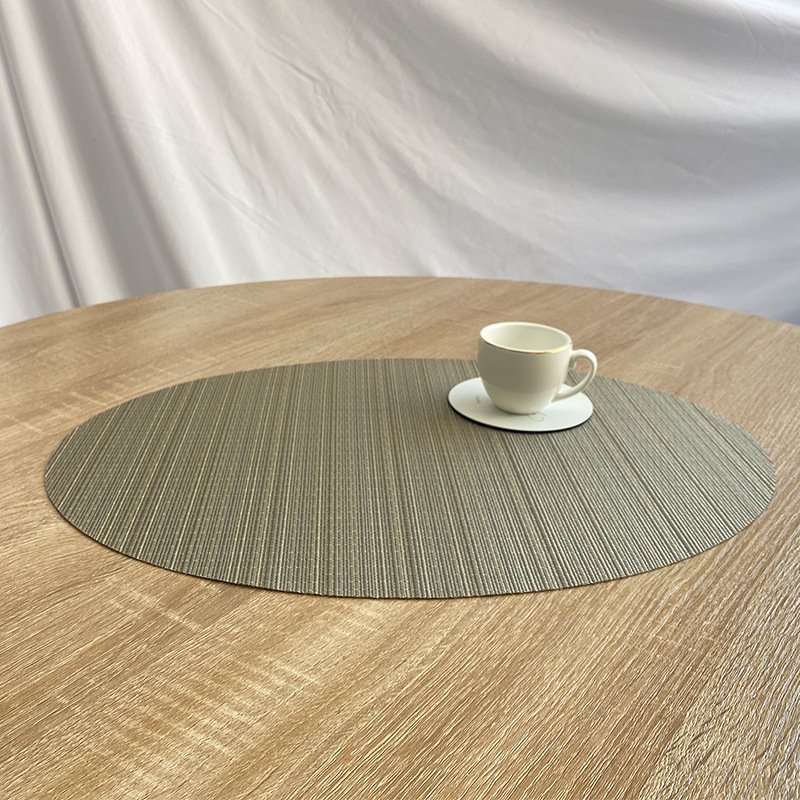 Japanese bamboo pattern heat insulation placemat oval thickened tableware mat hotel PVC mat solid color home kitchen mat coaster