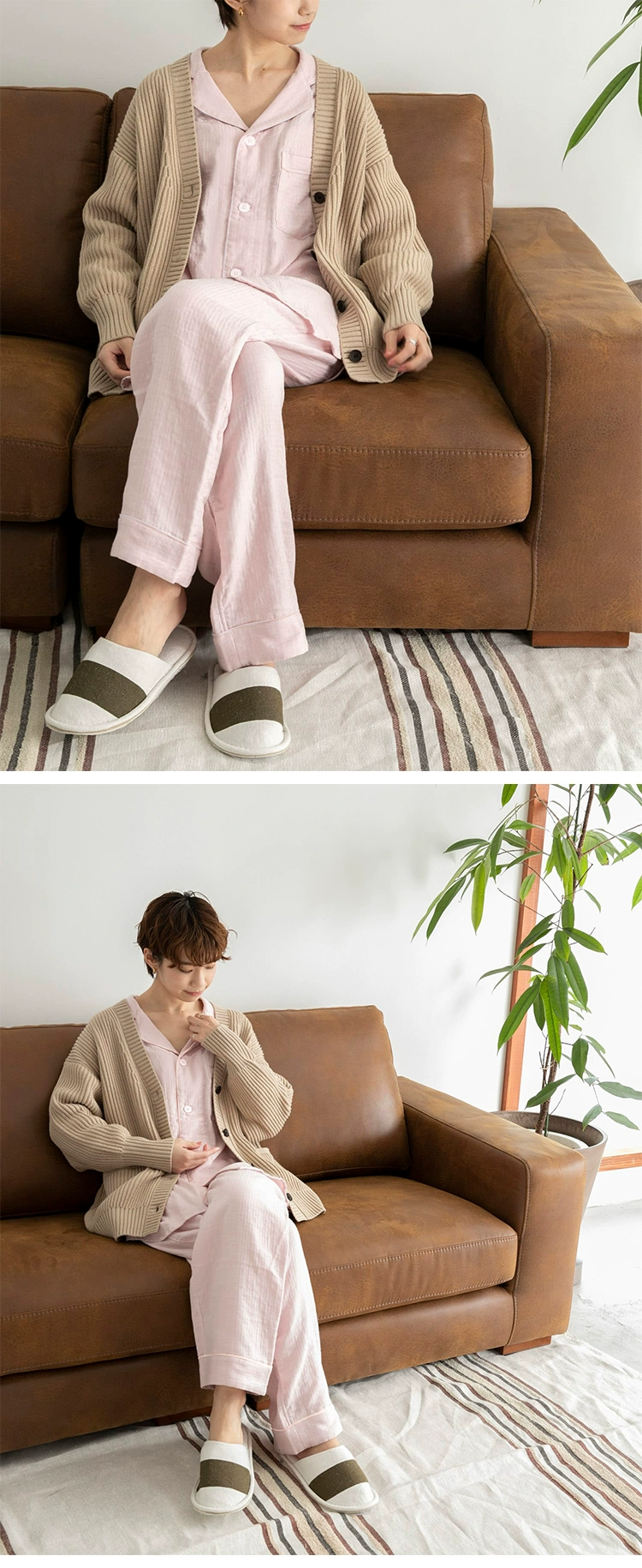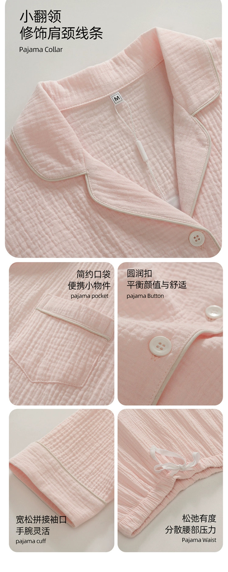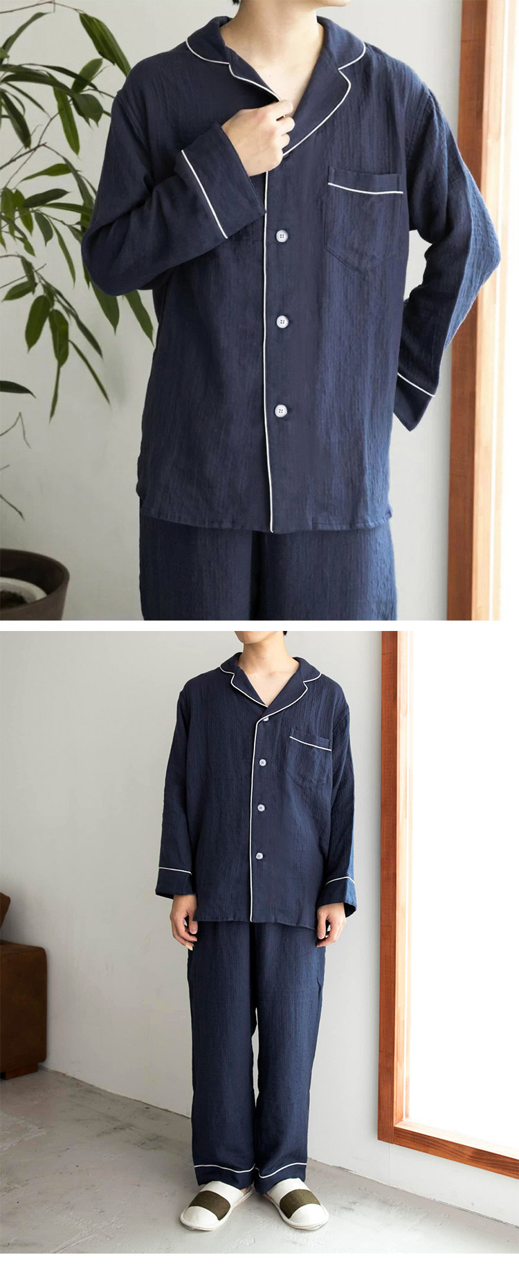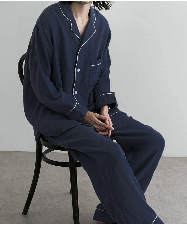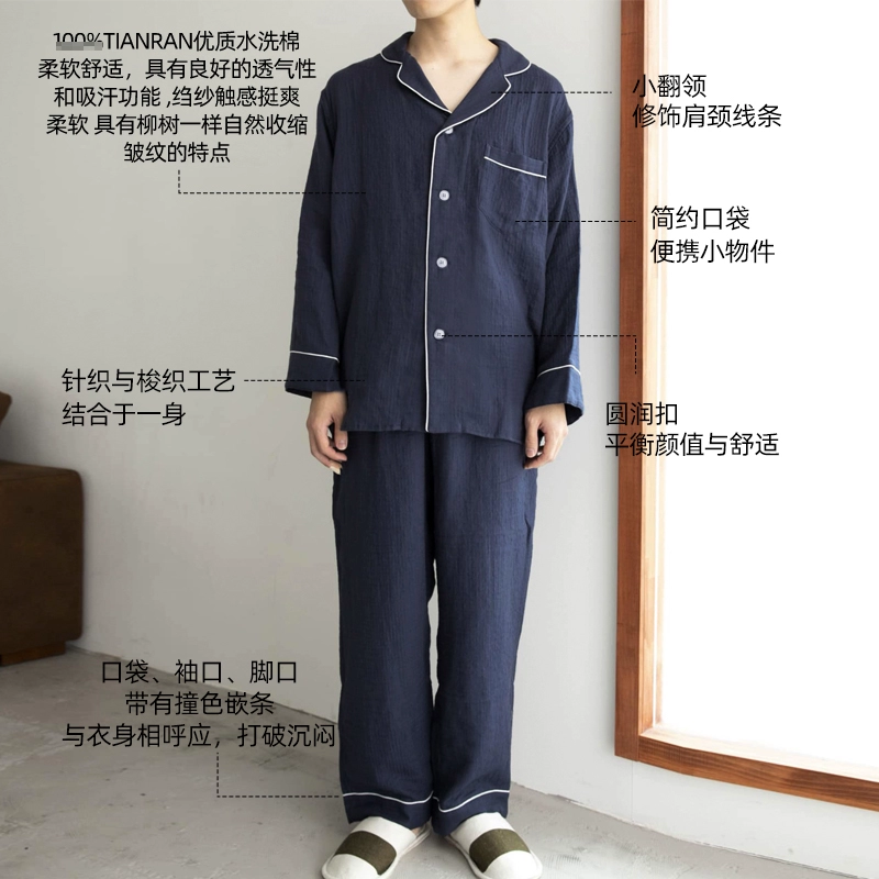 Japanese couple models skin-friendly breathable solid color double-layer cotton yarn long-sleeved trousers men and women pure cotton home clothes pajamas set