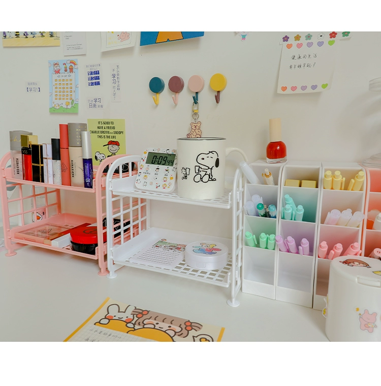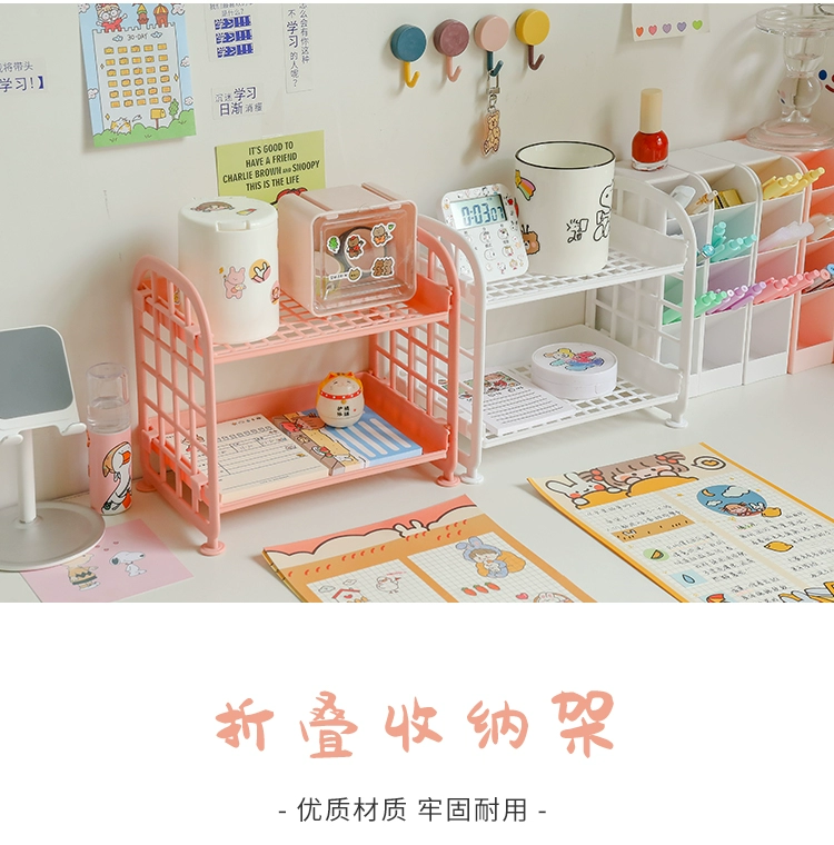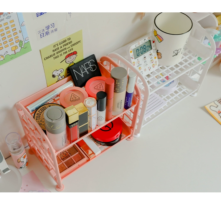 Japanese desktop double storage rack student dormitory cosmetic rack office table multi-layer finishing shelf