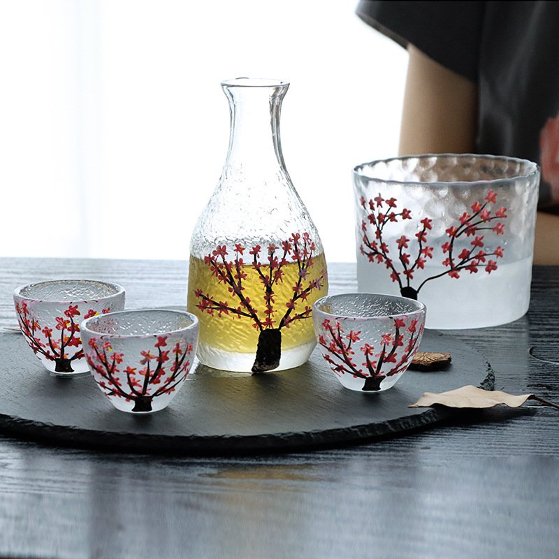 Be the first to review “Japanese-style plum blossom thumb sake pot sake cup set creative plum blossom frosted glass wine dispenser liquor set wholesale”