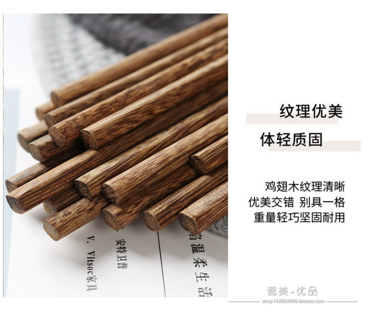 Japanese-style wooden tableware chicken wing wooden chopsticks household paint-free hot pot chopsticks kitchen public chopsticks 10 pairs wholesale