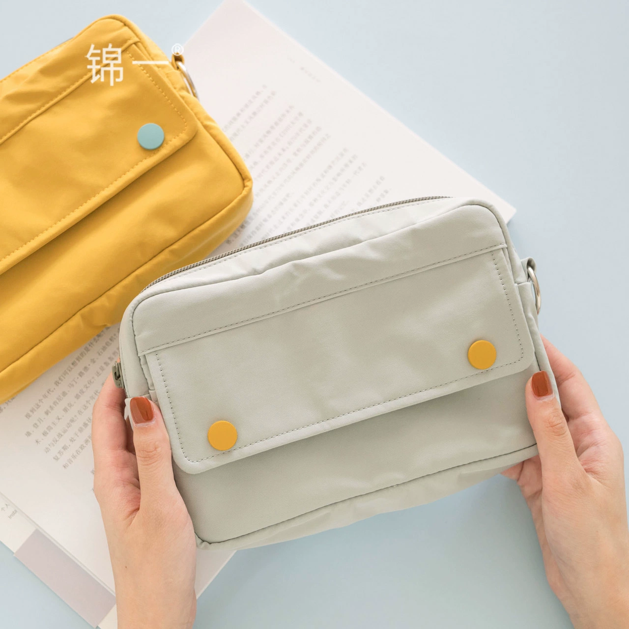 Jinyi stationery double hidden buckle large-capacity pencil bag storage bag simple multi-functional creative high school students net red cute male and female college students ins stationery bag pencil bag girl hand account bag