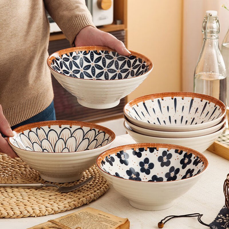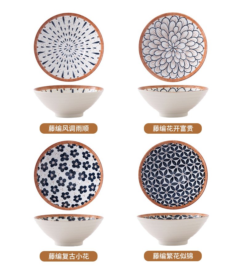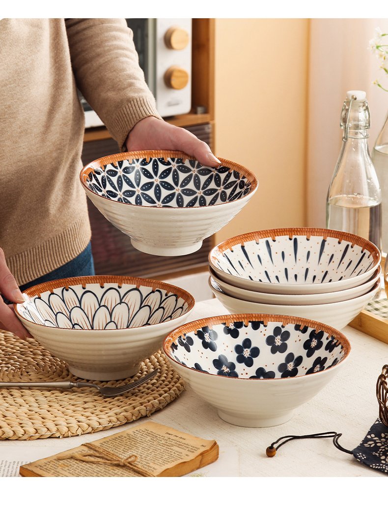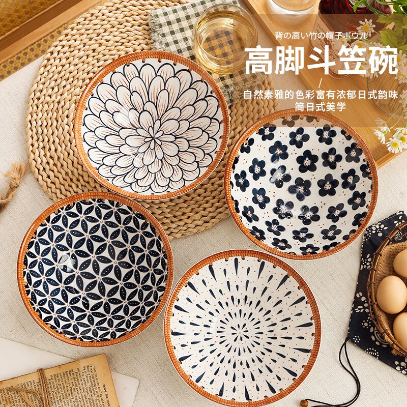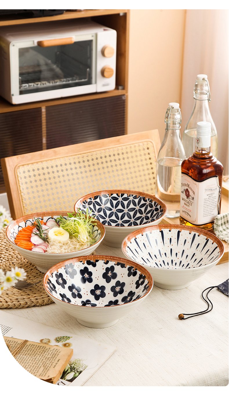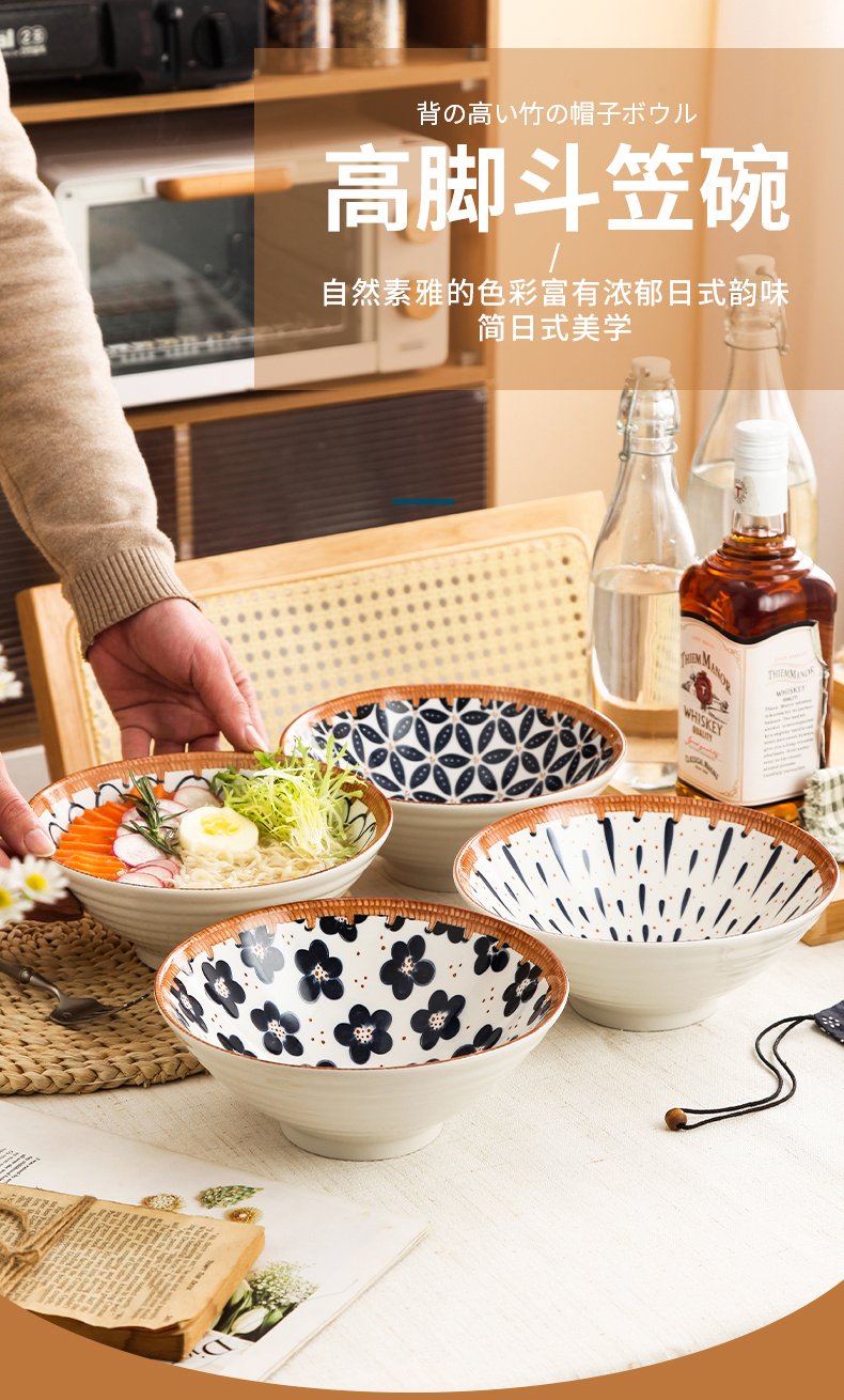Jiwu Forest Japanese 8-inch Ramen Bowl Bamboo Hat Bowl Household Large Bowl Tableware Large Soup Bowl Instant Noodle Bowl Eating Noodles 4 Pack