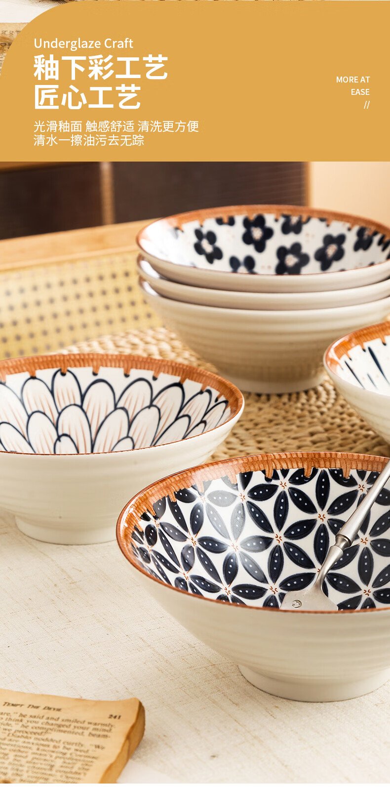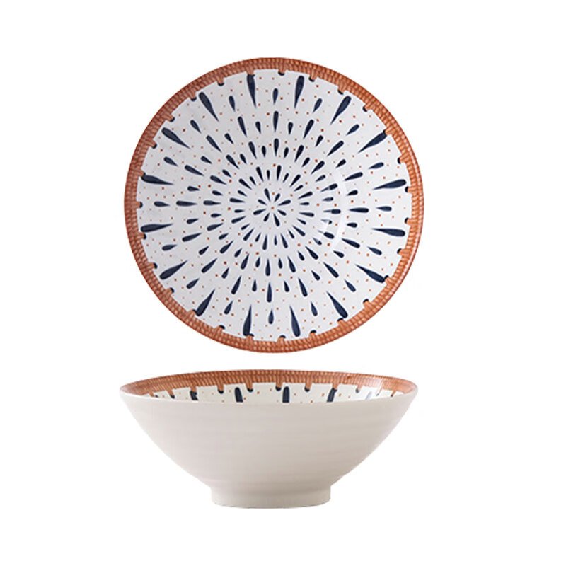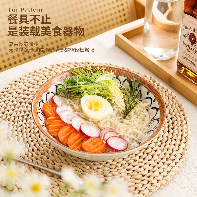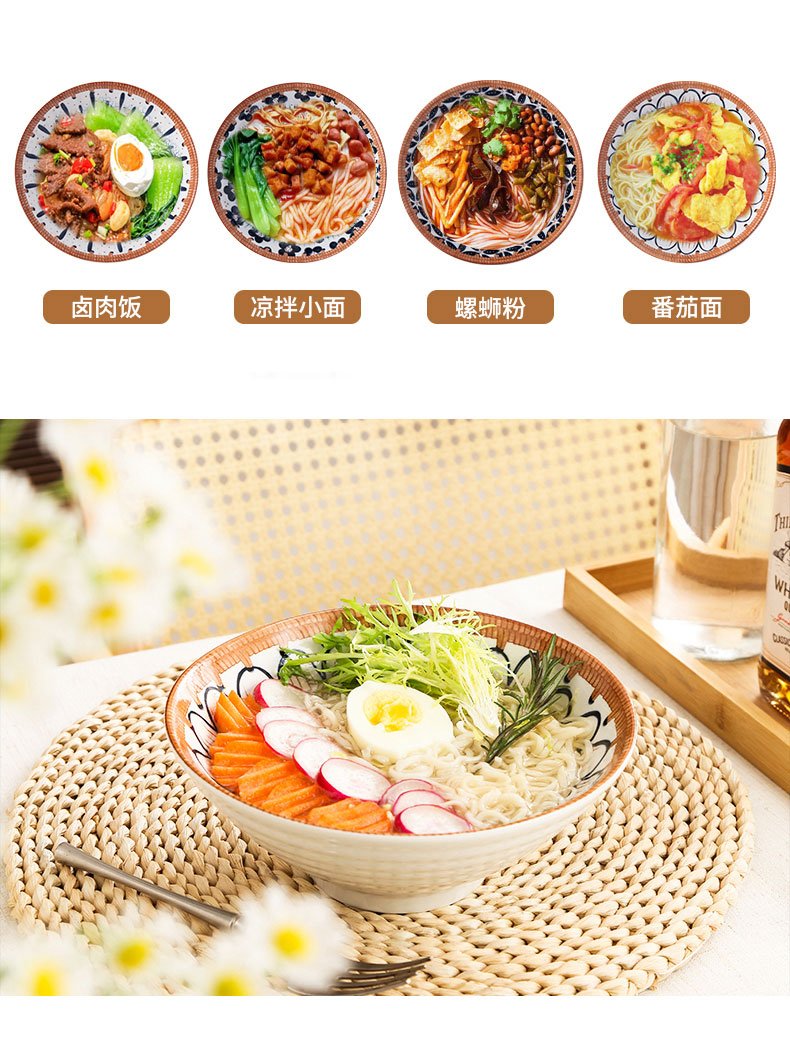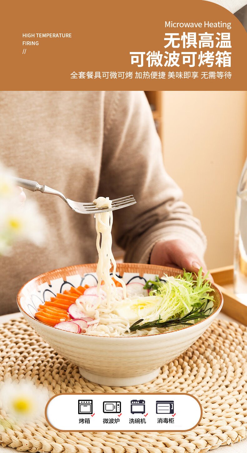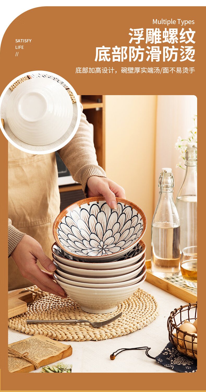 Jiwu Forest Japanese 8-inch Ramen Bowl Bamboo Hat Bowl Household Large Bowl Tableware Large Soup Bowl Instant Noodle Bowl Eating Noodles 4 Pack