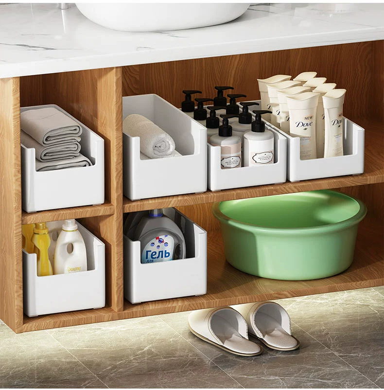 Kitchen storage box Japanese-style rectangular cabinet right-angle shelf plastic sundries home desktop snacks finishing basket