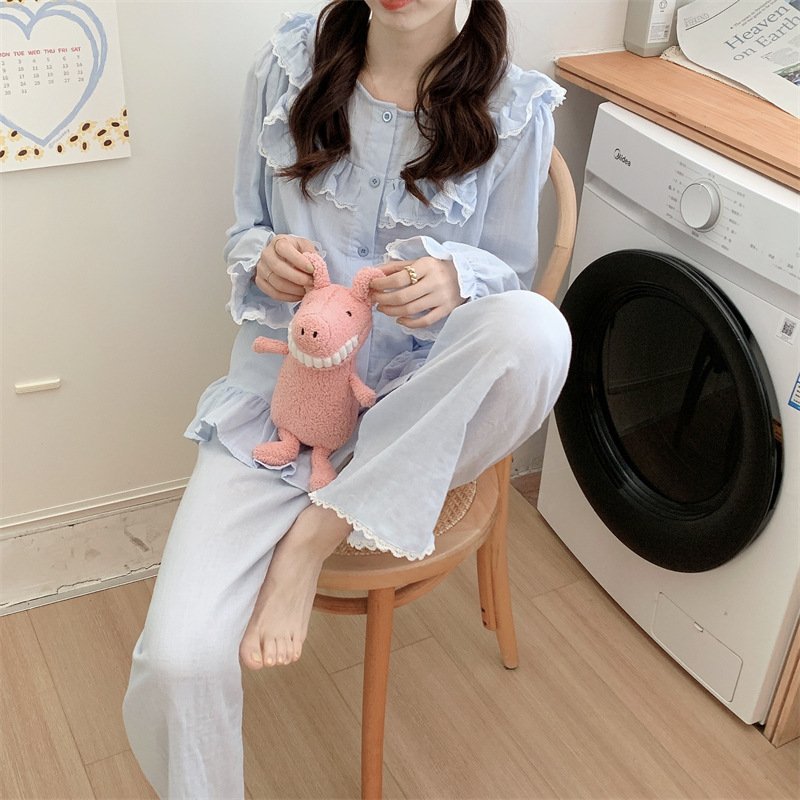 Be the first to review “Korean foreign trade ladies ins cotton double-layer gauze new French style solid color pajamas long-sleeved round neck home service suit” Cancel reply