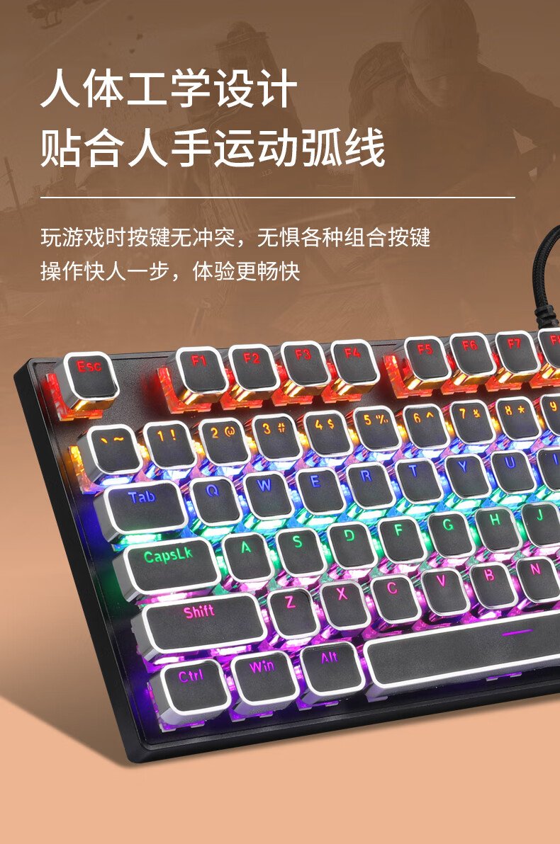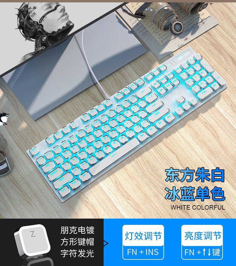 MageGee Mechanical Punk High-value Retro Keyboard Colorful Backlight Wired Keyboard Square Keycap Punk Mechanical Keyboard E-sports Game Mechanical Keyboard White Blu-ray Green Switch