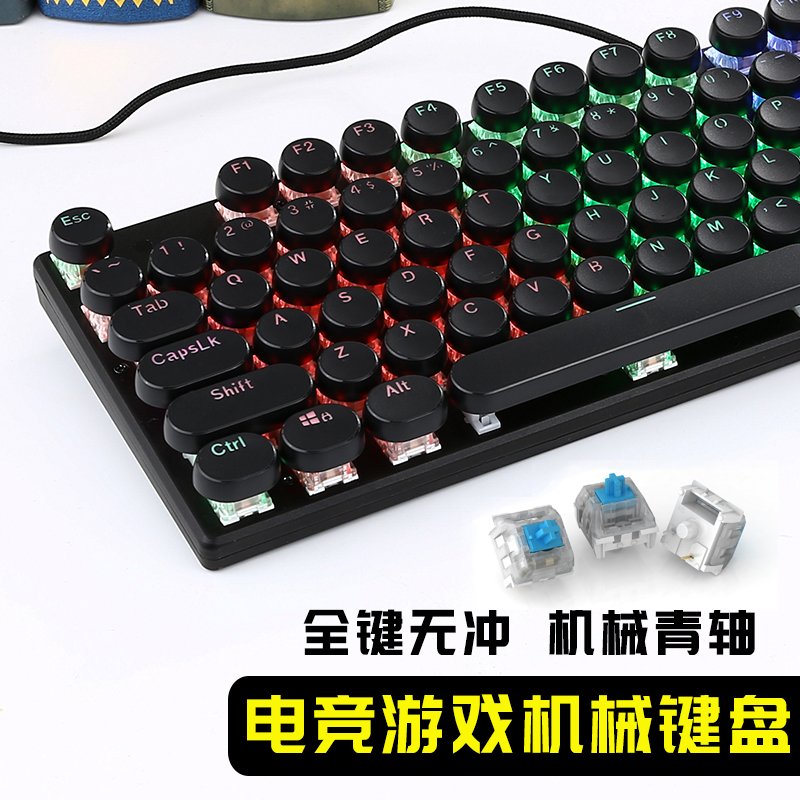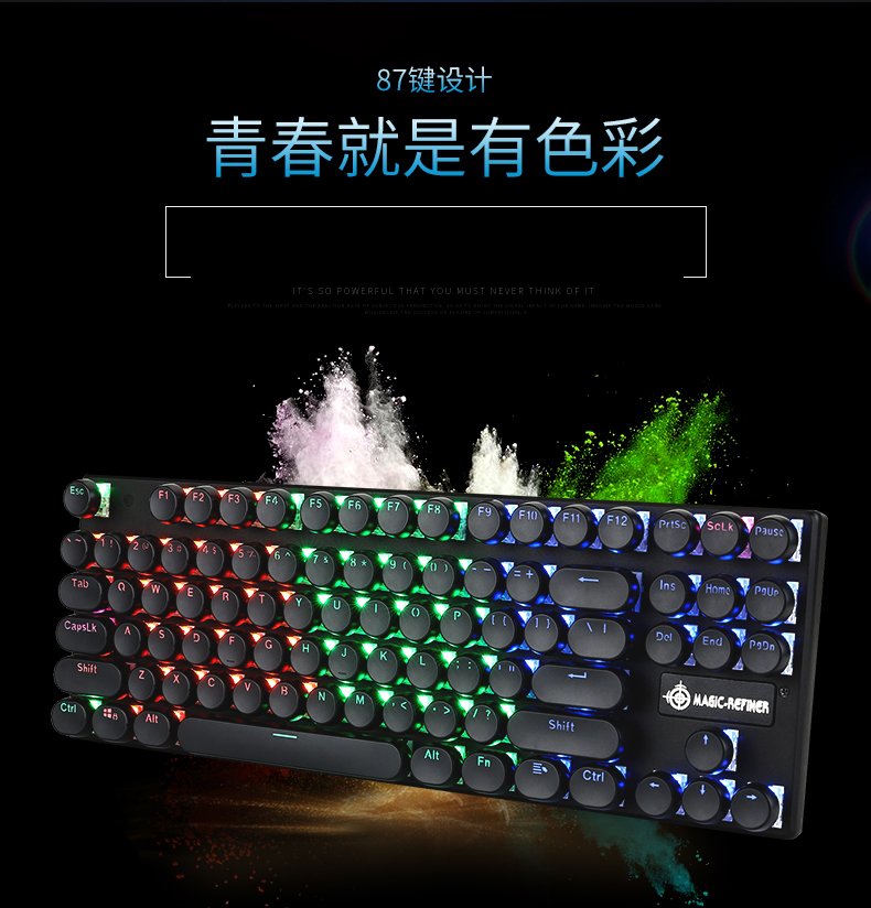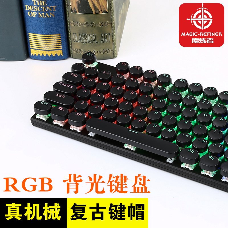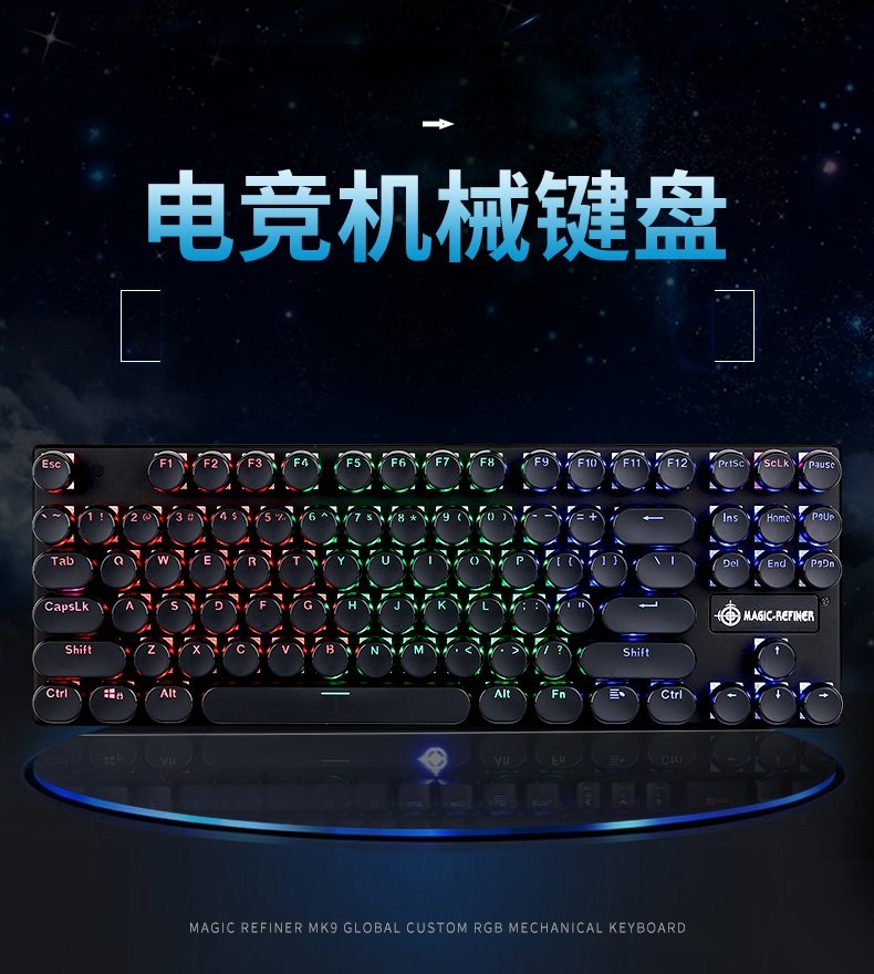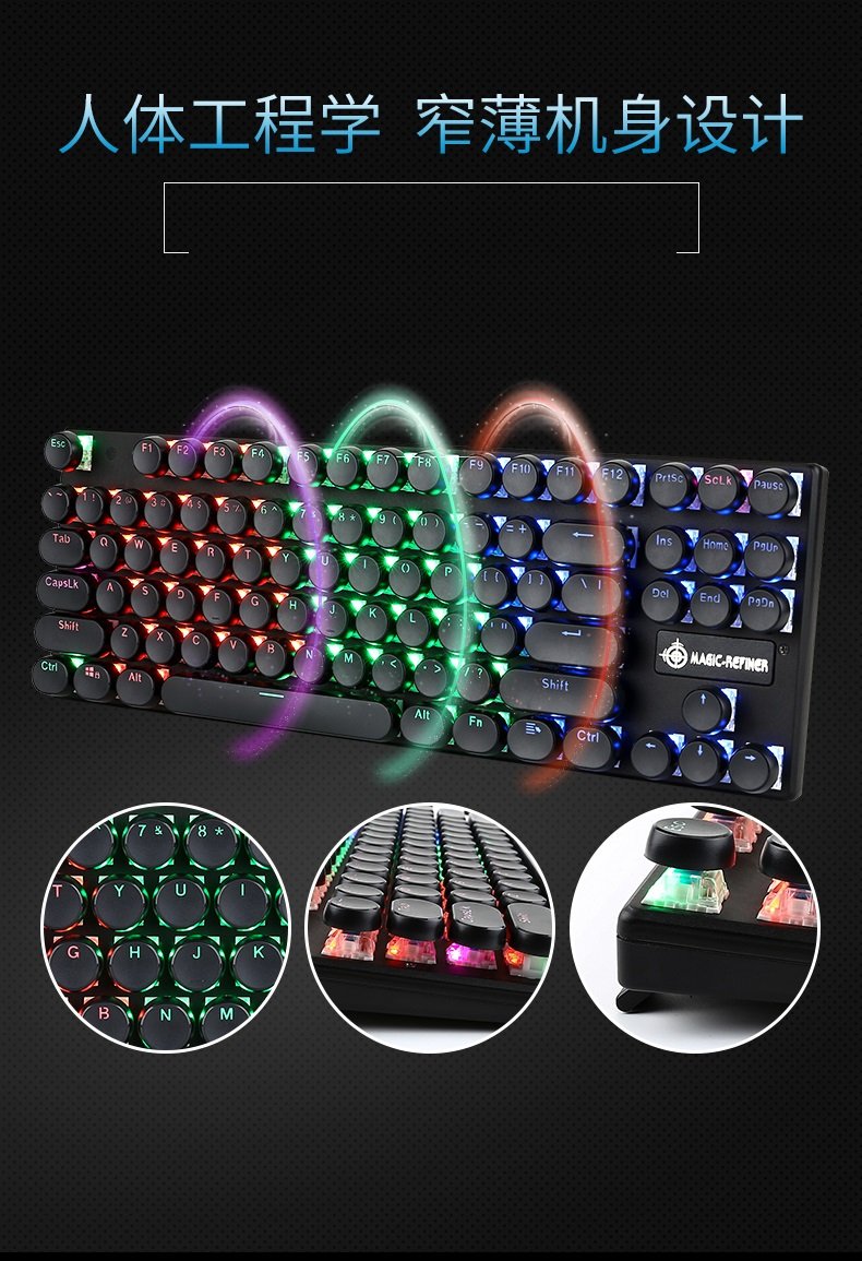 Magician MK6 mechanical keyboard gaming gaming keyboard 87-key RGB phantom color mechanical keyboard retro round keycap wired keyboard green shaft black