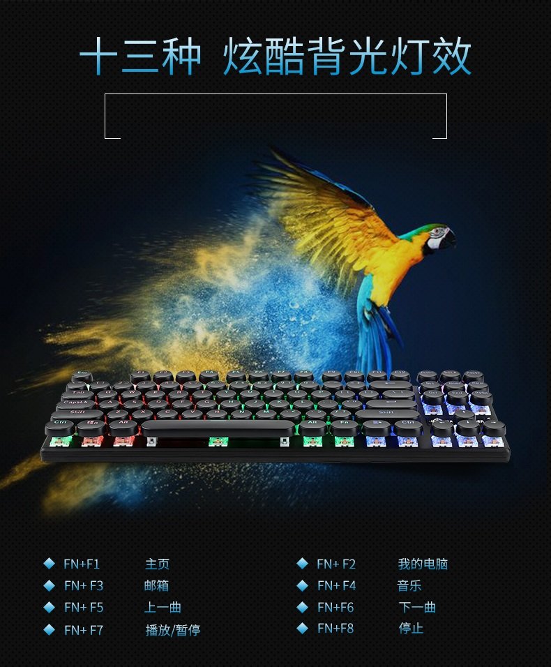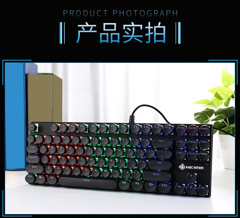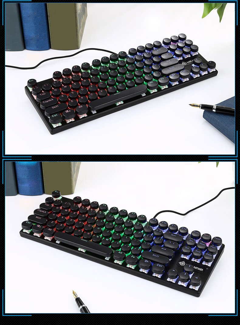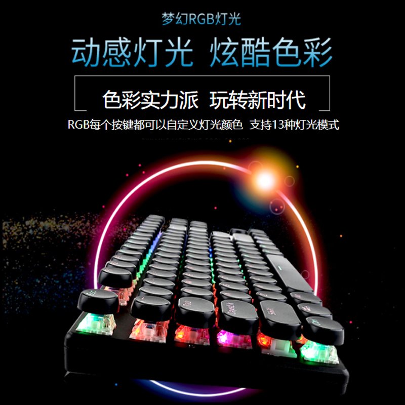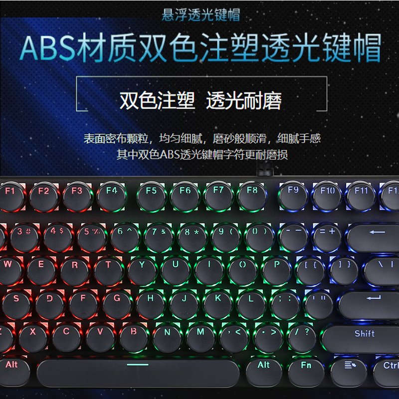 Magician MK6 mechanical keyboard gaming gaming keyboard 87-key RGB phantom color mechanical keyboard retro round keycap wired keyboard green shaft black