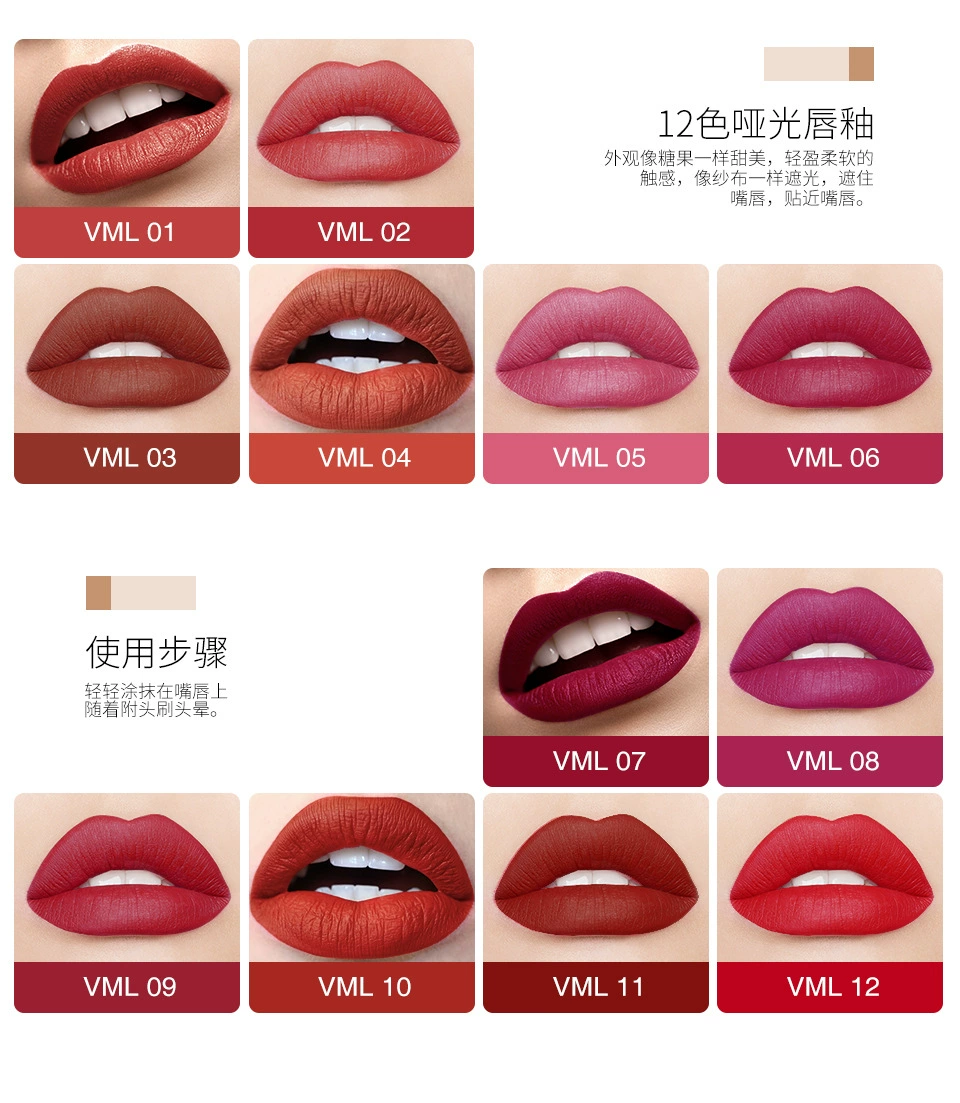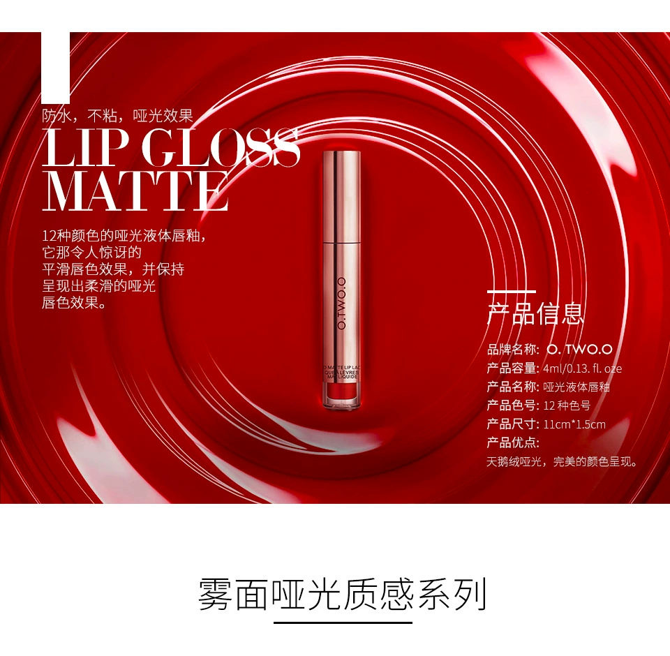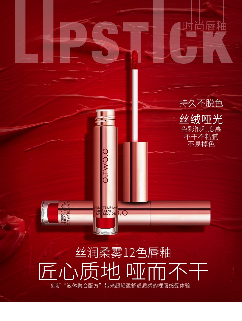 Makeup O.TWO.O non-stick cup matte lip gloss matte lip glaze non-fading liquid lipstick makeup hot style 12 colors