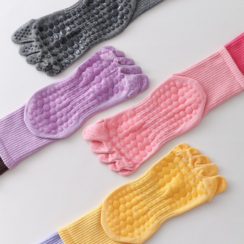 Medium tube five-finger yoga socks Women’s double Luo Lipa tabi Pilates socks professional non-slip indoor sports fitness dance socks
