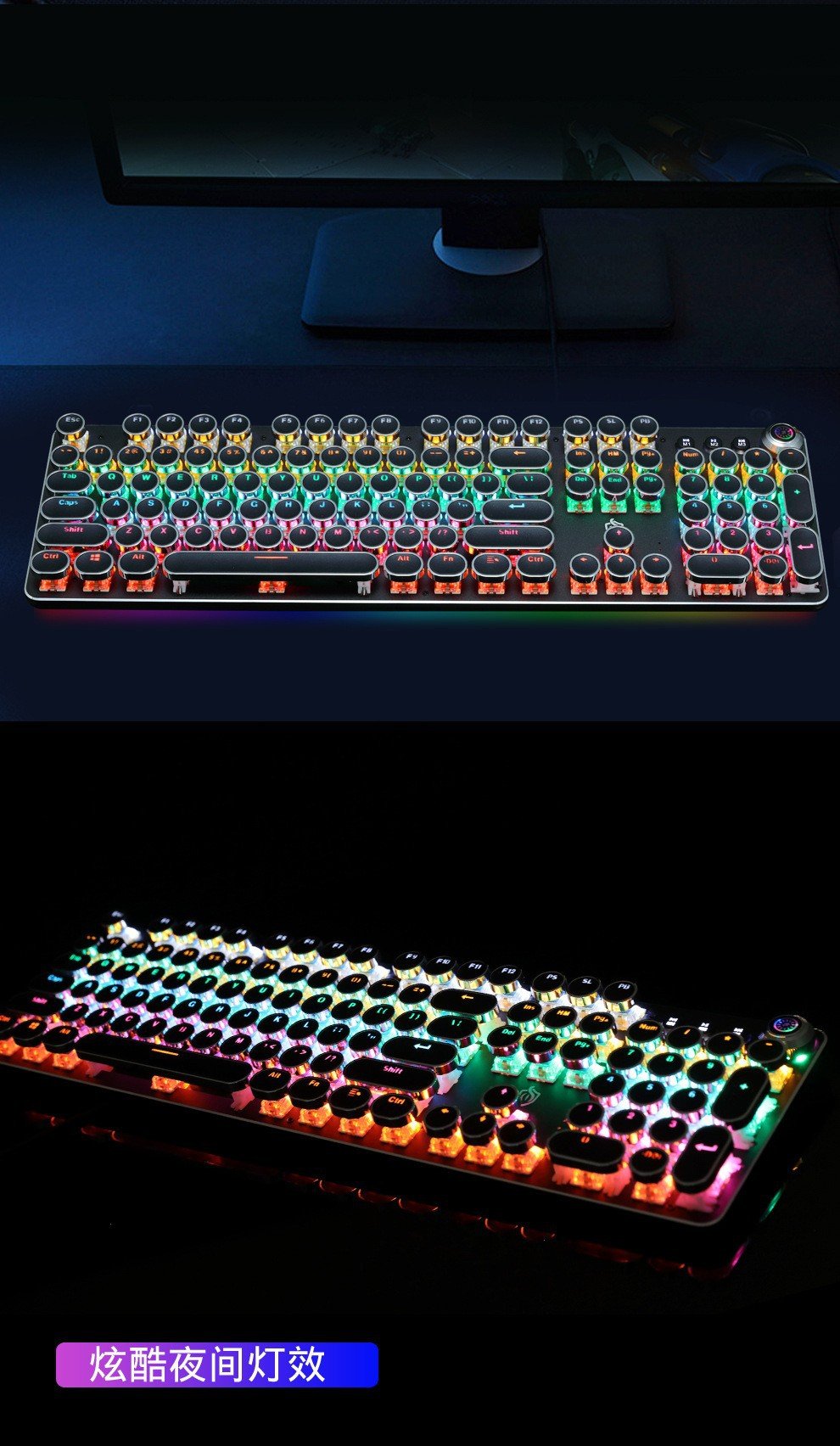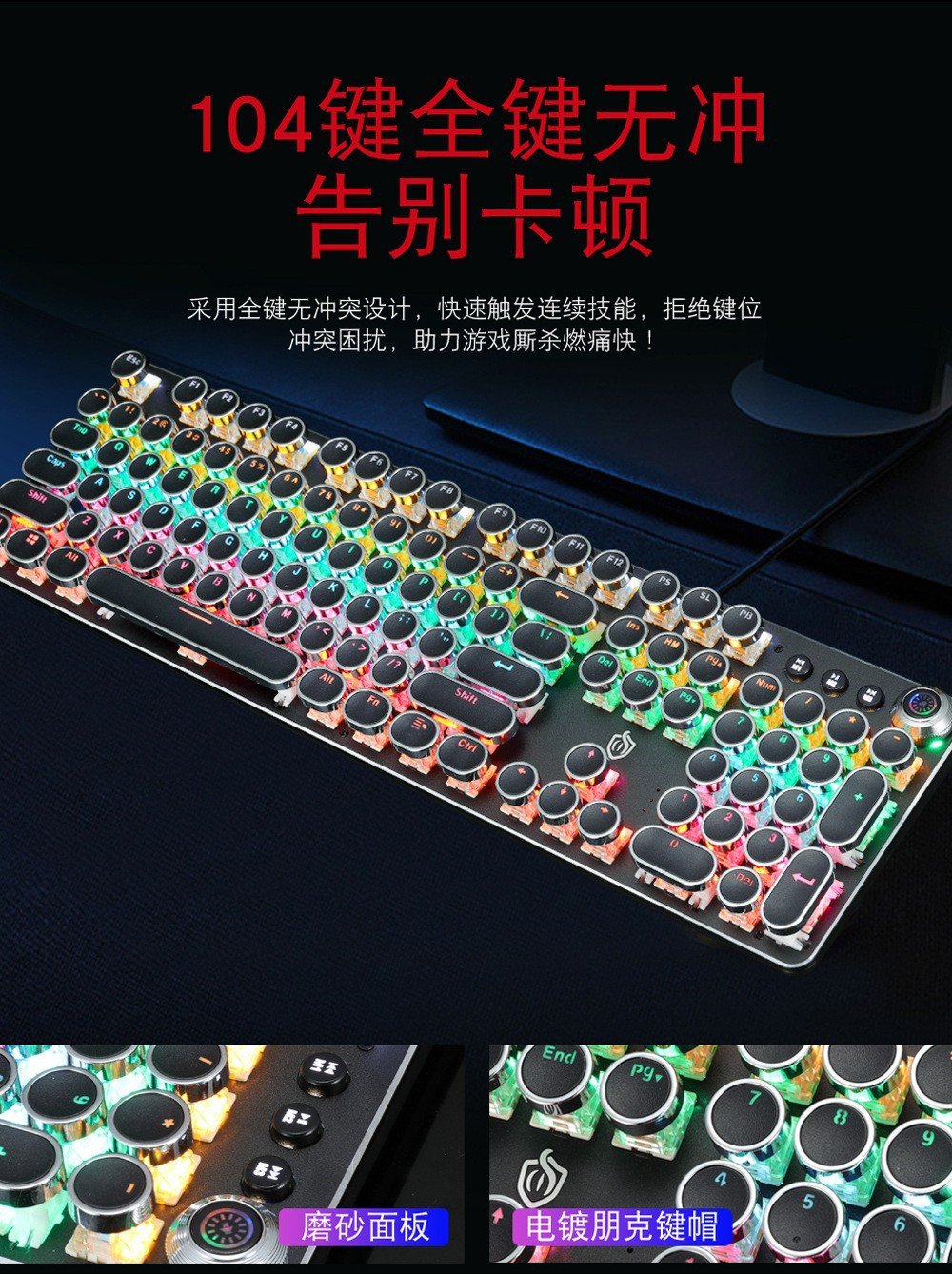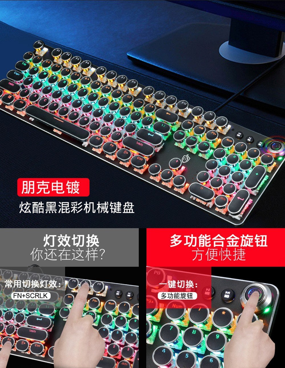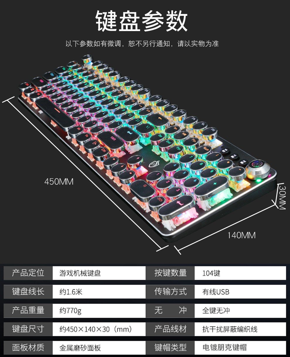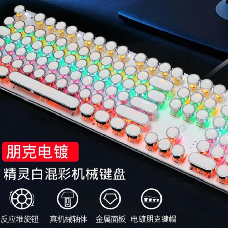Meishang E family 820A retro punk electroplating knob luminous mechanical keyboard eat chicken computer game keyboard cross-border