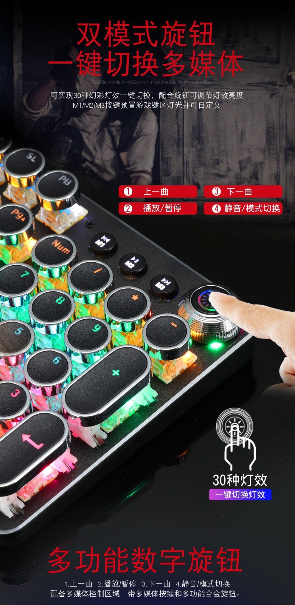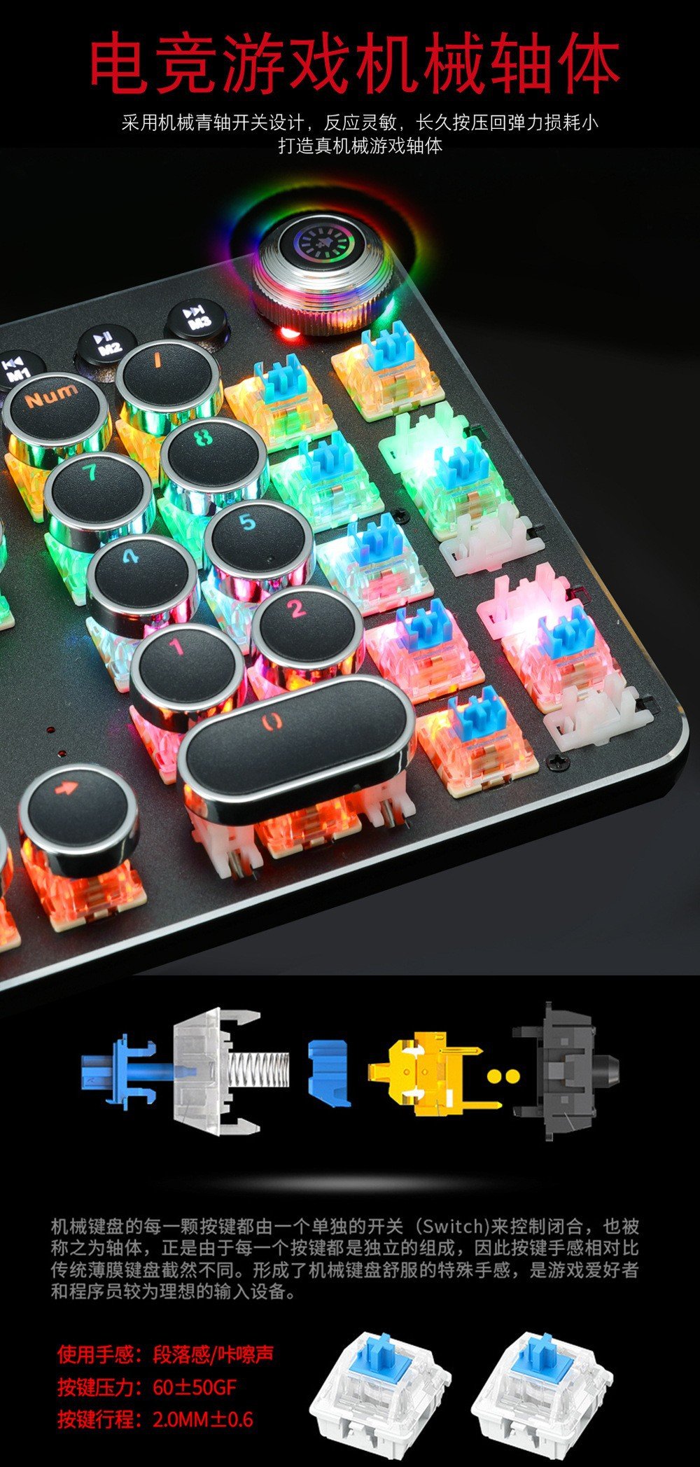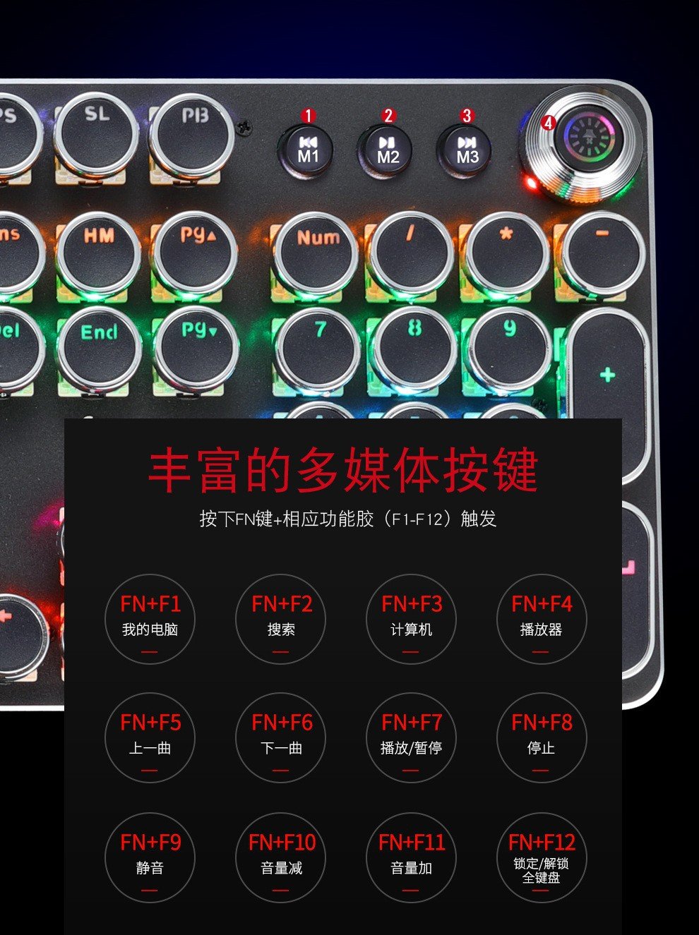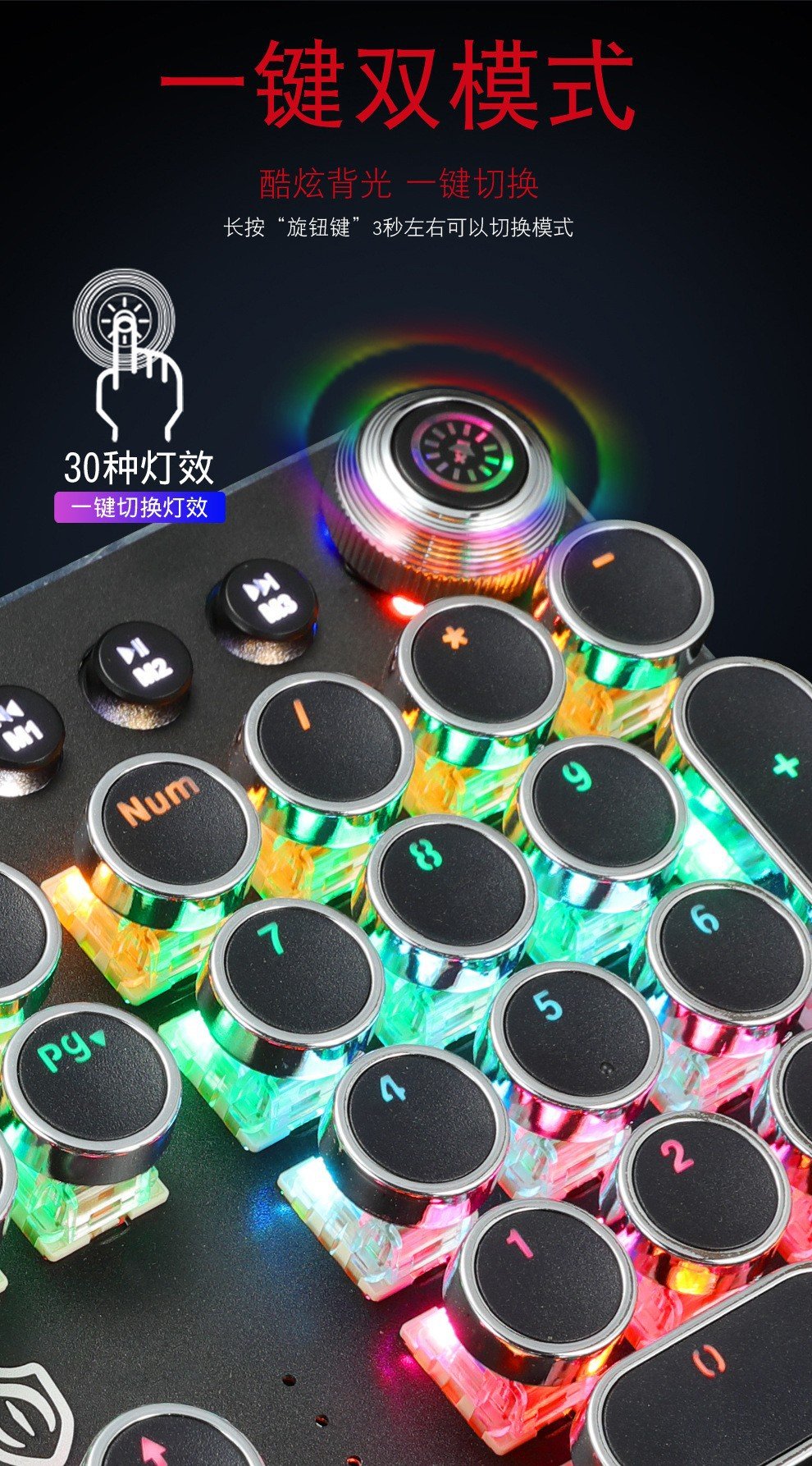 Meishang E family 820A retro punk electroplating knob luminous mechanical keyboard eat chicken computer game keyboard cross-border