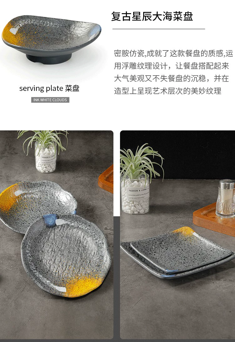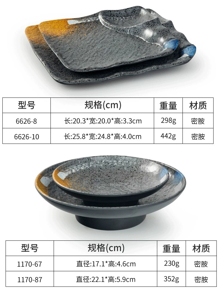 Melamine plate Japanese-style plastic barbecue plate imitation porcelain round flat plate barbecue plate restaurant hot pot tableware dish commercial