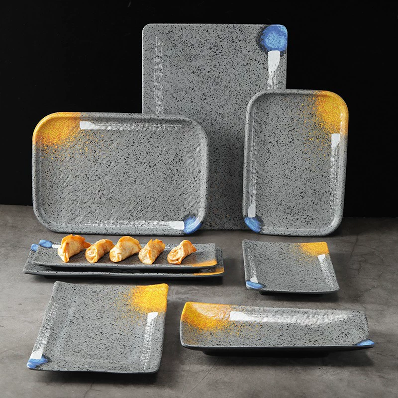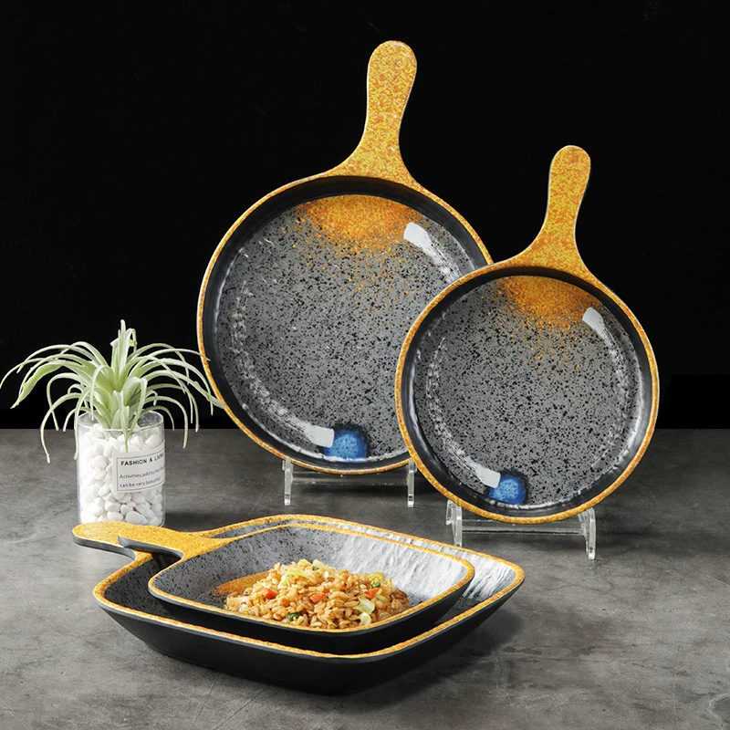 Melamine plate Japanese-style plastic barbecue plate imitation porcelain round flat plate barbecue plate restaurant hot pot tableware dish commercial
