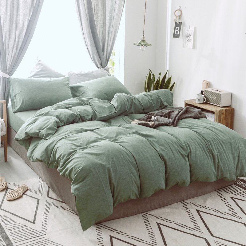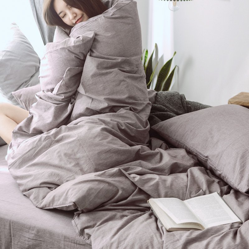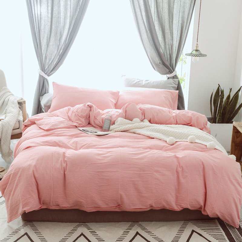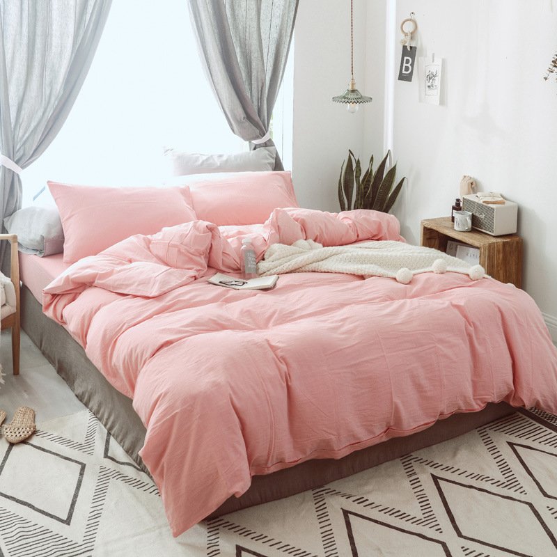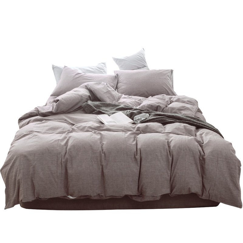 MUJI Japanese-style good washed cotton solid color four-piece set simple cotton bedding fitted sheet 1.5/1.8M