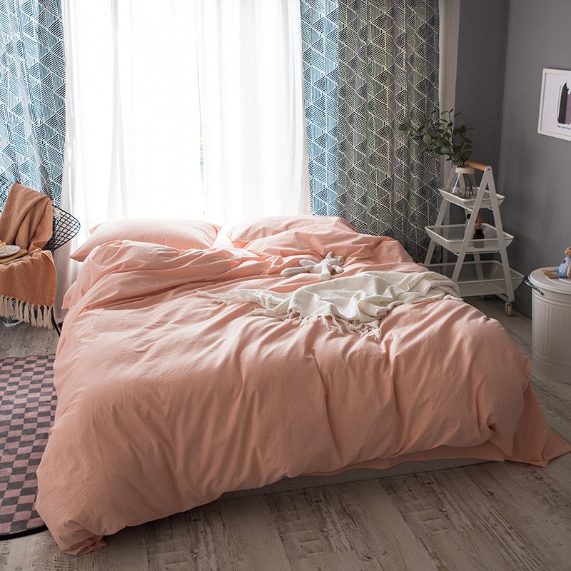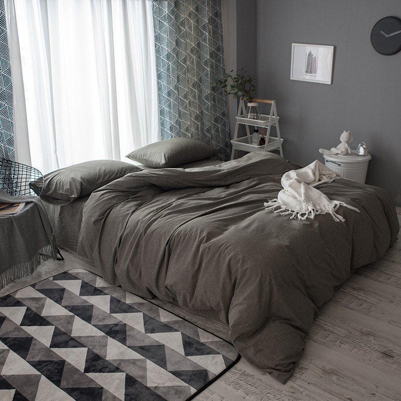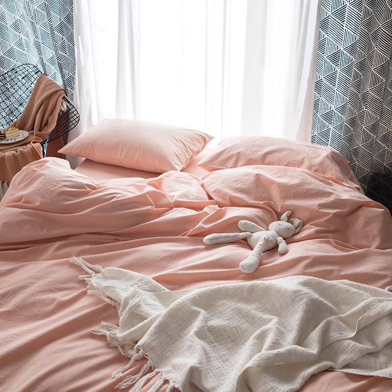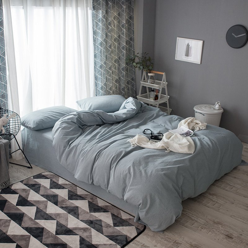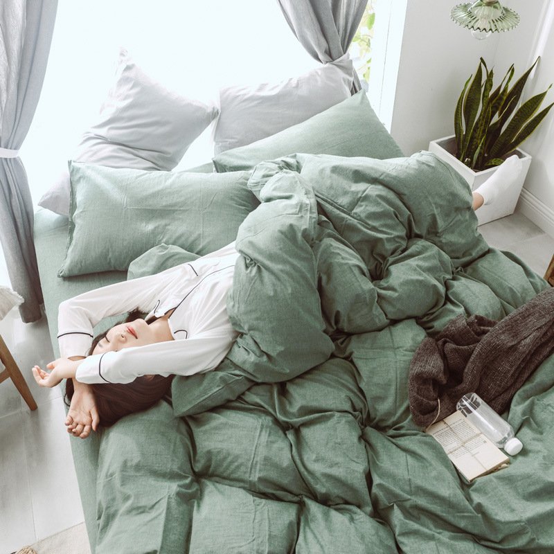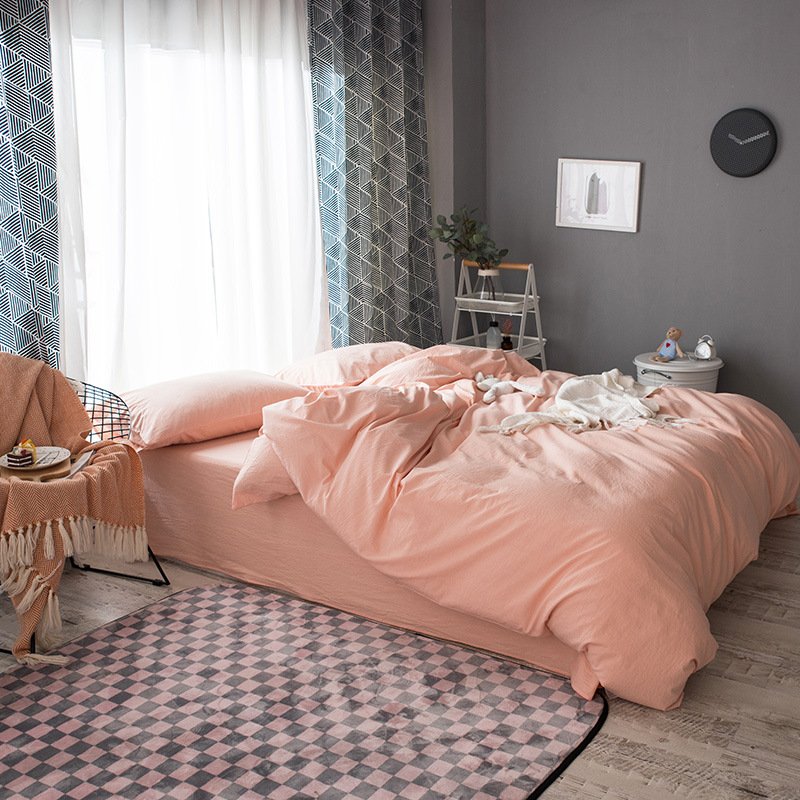 MUJI Japanese-style good washed cotton solid color four-piece set simple cotton bedding fitted sheet 1.5/1.8M